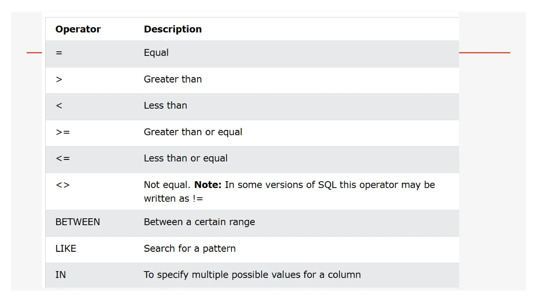 • ANY means that the condition will be true if the operation is true for any of the values in the