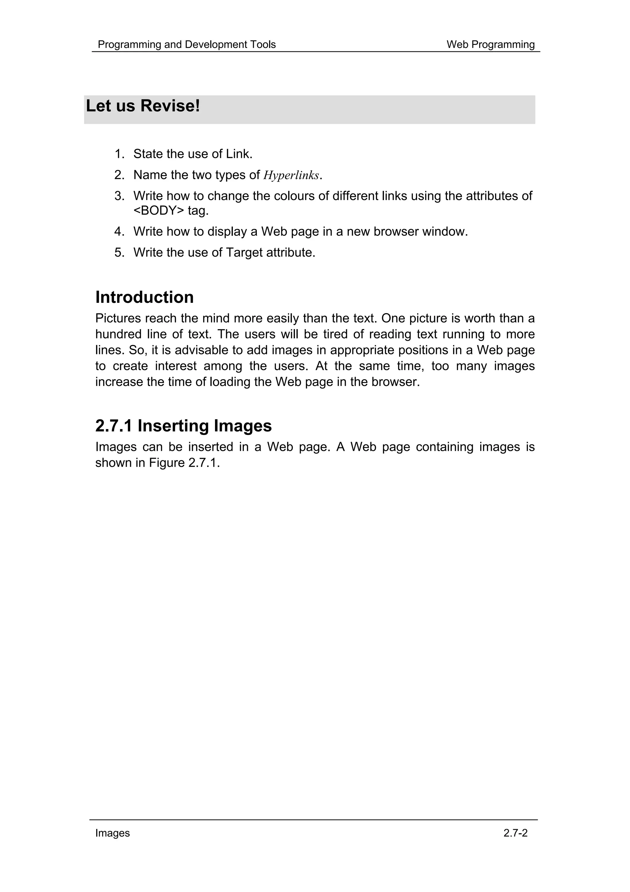 - Insert images using the <IMG> tag and specify the image file path using the SRC attribute.