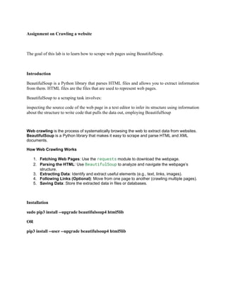Website crawling is the process of systematically navigating and extracting data from web pages using automated scripts, known as web crawlers (spiders or bots). Crawlers are widely used for data collection, search engine indexing, and cybersecurity testing.