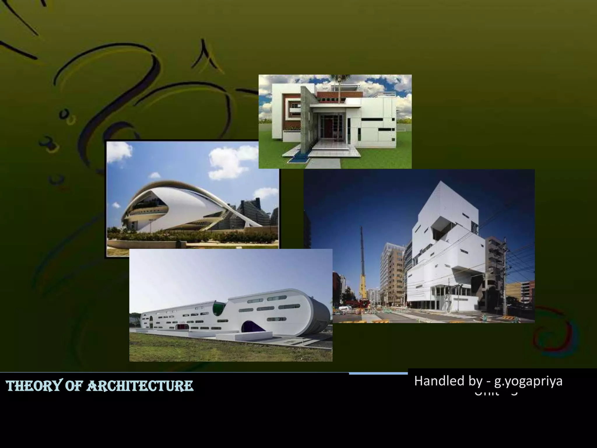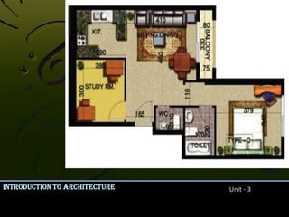 This document discusses various aspects of circulation and movement through spaces in architecture. It covers approaches to buildings from a distance, types of entrances, configurations of interior spaces, relationships between paths and spaces, and different forms for circulation spaces like corridors, halls, galleries and stairways. Key points include different types of approaches like frontal, oblique and spiral; entrance styles like flush, projected and recessed; common space configurations like linear, radial and grid; and how circulation spaces can be closed, open on one side or both sides. Stairways are also examined in terms of their forms and how they provide vertical movement between levels.