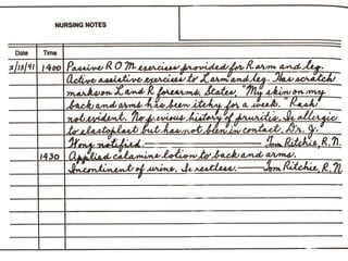 #54 This is another narrative charting sample. You can see the client’s statements are in quotes. And it is written in phrases.