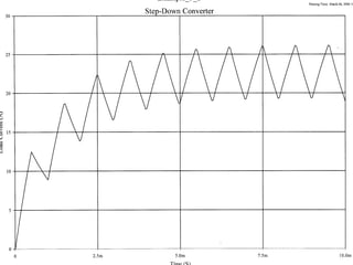 This document discusses DC-DC converters, which convert a fixed DC source into a variable DC source like an AC transformer. It describes step-down converters, which use a switch like a BJT, MOSFET, or IGBT to alternately connect and disconnect the voltage source to produce a lower average output voltage. Key concepts covered include duty cycle, pulse-width modulation, modes of operation, generation of the switching signal, and analysis of a step-down converter with an RL load in continuous conduction mode.