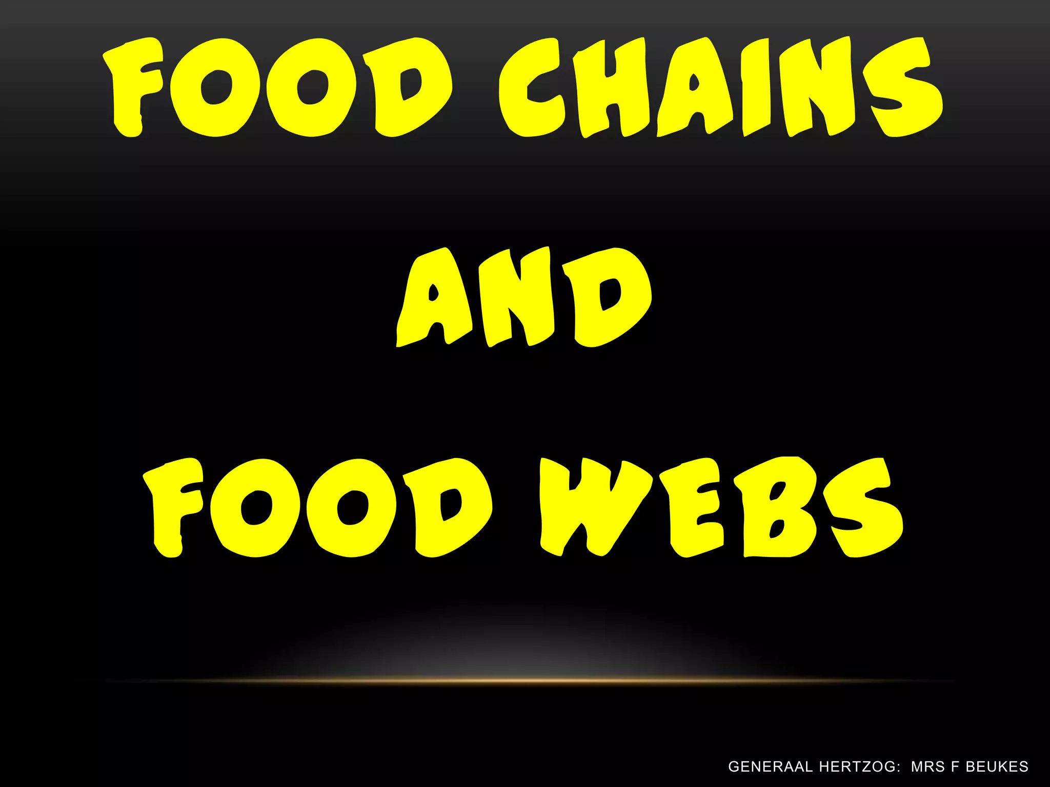 The document discusses food chains and food webs. It defines key terms like ecosystem, habitat, population, community, food chain, and food web. It provides examples of food chains like grass-springbok-cheetah. A food web shows how different food chains are interlinked, with herbivores serving as food for various predators, carnivores and omnivores. Decomposers play an important role in food webs by recycling nutrients from dead plants and animals back into the soil.