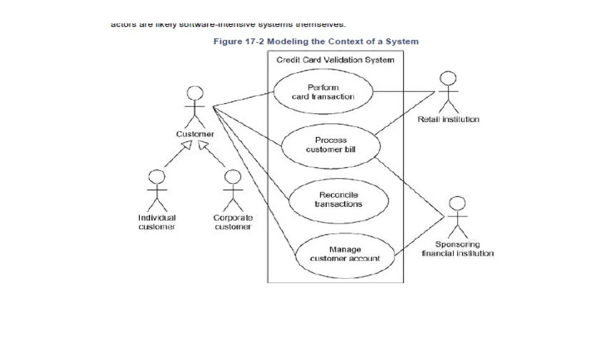 involves modeling the context of a system, subsystem, or class, or modeling the requirements of the