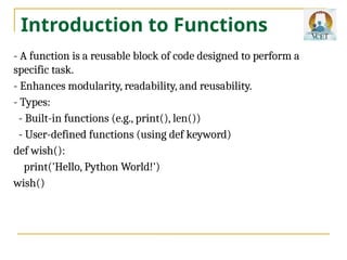 - User-defined functions (using def keyword)