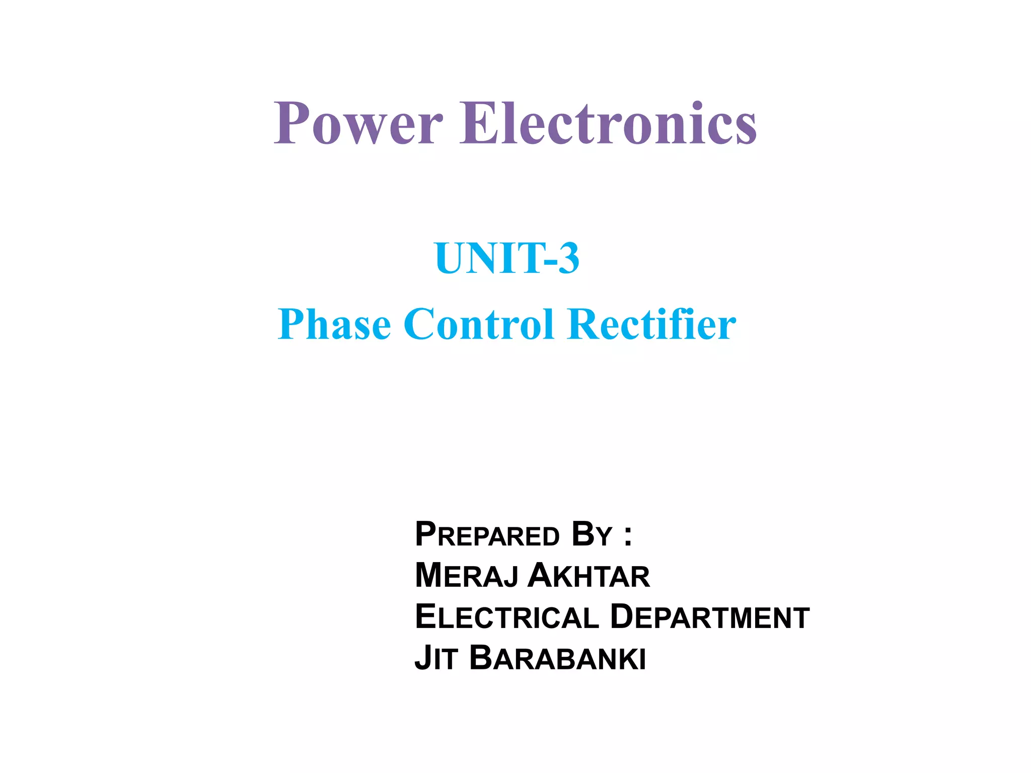 The document discusses phase control rectifiers, including: