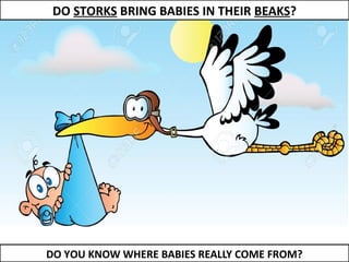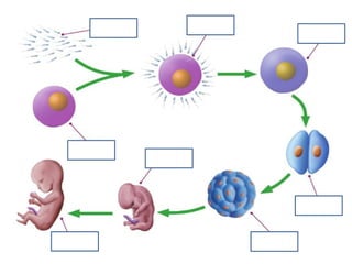 Human beings reproduce sexually, requiring both a male and female. The document outlines the process of human reproduction from fertilization through birth. It describes how sperm and eggs are produced, how they unite during sexual intercourse to form a zygote, and the development stages of the embryo and fetus as it grows over nine months in the uterus until birth. The male and female reproductive systems and changes during puberty are also explained.