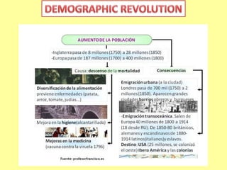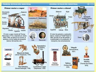 The document outlines the significant societal changes brought about by the Industrial Revolution, which transitioned economies from agrarian to industrial beginnings in the mid-eighteenth century, primarily in England. It discusses the political, economic, and social situations of the time, highlighting issues such as high taxes on the bourgeoisie, poor labor conditions for peasants, and the emergence of technical innovations in various industries. The evolution of transportation, the banking system, and the development of class society are also noted, emphasizing the transformative impact of industrialization on living and working conditions.