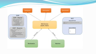 This document discusses technologies for enabling service-oriented architectures (SOAs). It covers generic technologies like RESTful and SOAP web services. Platform-specific technologies for Java (JAX-WS) and .NET (.NET, WCF) are also discussed. Standards like XML, HTTP, SOAP, WSDL, and UDDI that web services are built on are explained. The roles of service providers, consumers and registries are defined. Enterprise service buses and their role in service integration are summarized. Finally, factors to consider in building a business case for SOA like stakeholders' objectives, benefits, cost savings, and return on investment are outlined.