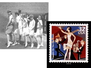 The document summarizes key events and topics of the 1920s in the United States, including the Palmer Raids targeting radicals, the Sacco and Vanzetti trial, the rise of the Ku Klux Klan targeting immigrants and minorities, major labor strikes, scandals during the Harding presidency, Prohibition and the rise of gangsters, the Scopes Monkey Trial debating evolution, and the growth of entertainment like radio, movies, and sports in the decade. It also discusses the Great Migration of African Americans to northern cities and the growth of the NAACP during this period.