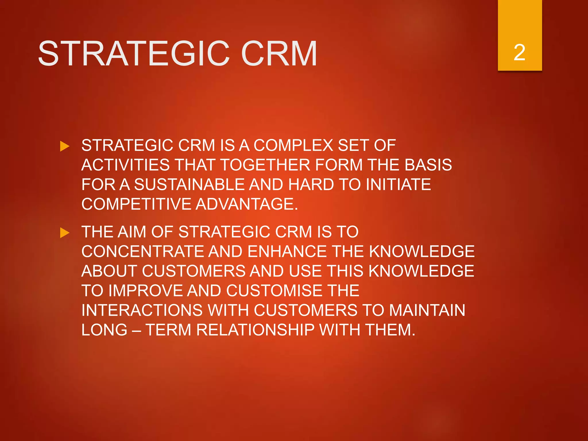 The document outlines the strategic planning and implementation of Customer Relationship Management (CRM), emphasizing customer knowledge enhancement and relationship maintenance. It discusses various CRM strategies, planning steps, implementation processes, and the importance of technology and analytics in CRM. Additionally, it covers common issues encountered during implementation, guidelines for success, and the role of CRM managers.