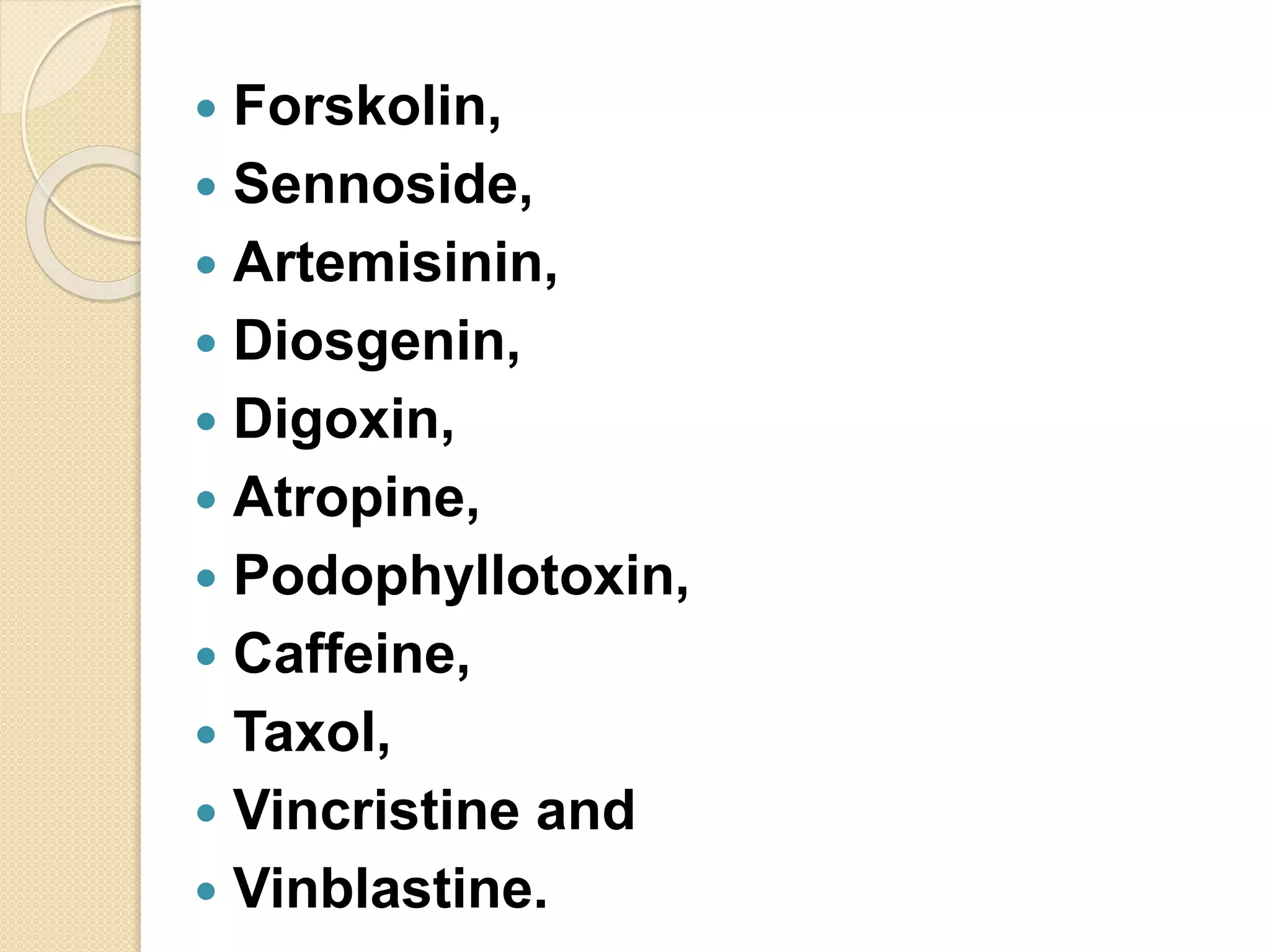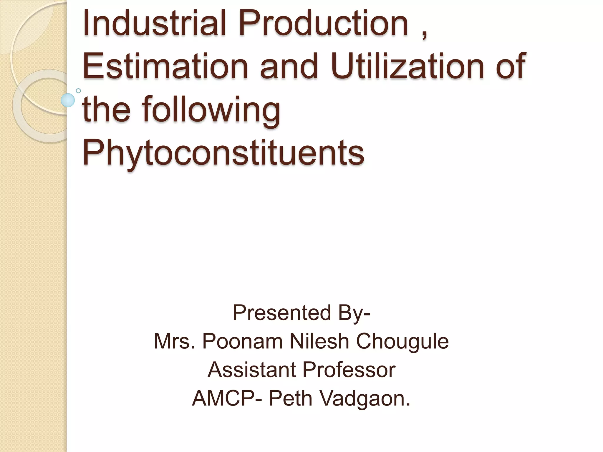 The document presents methods for the estimation and utilization of various phytoconstituents, including forskolin, digoxin, vinca alkaloids, and podophyllotoxin. It details their biological sources, extraction processes, identification tests, and utilization in treatment for conditions such as cardiovascular issues and cancer. Each compound's specific methods of cultivation and chemical properties are also outlined, alongside their therapeutic applications in traditional and modern medicine.