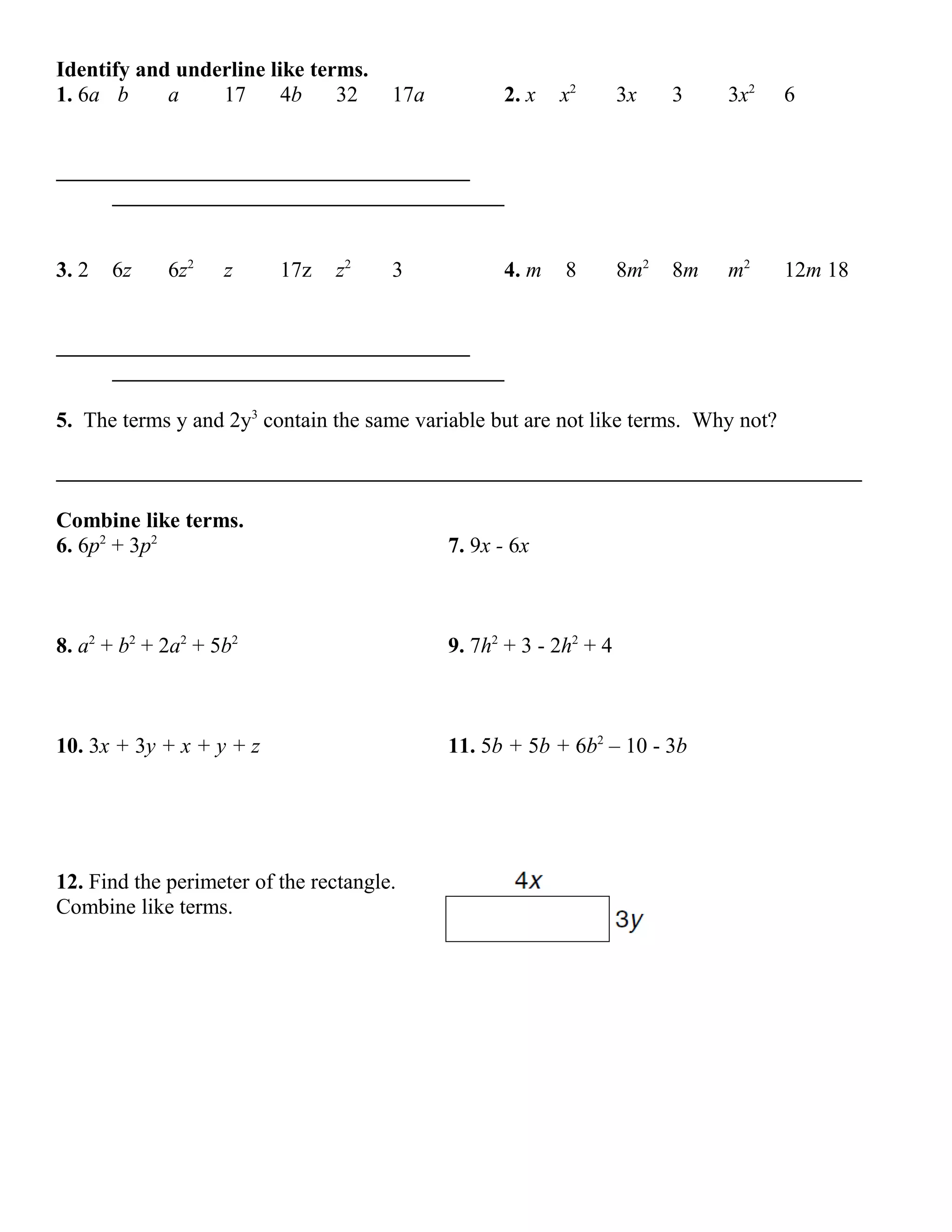 Combining like terms gives: