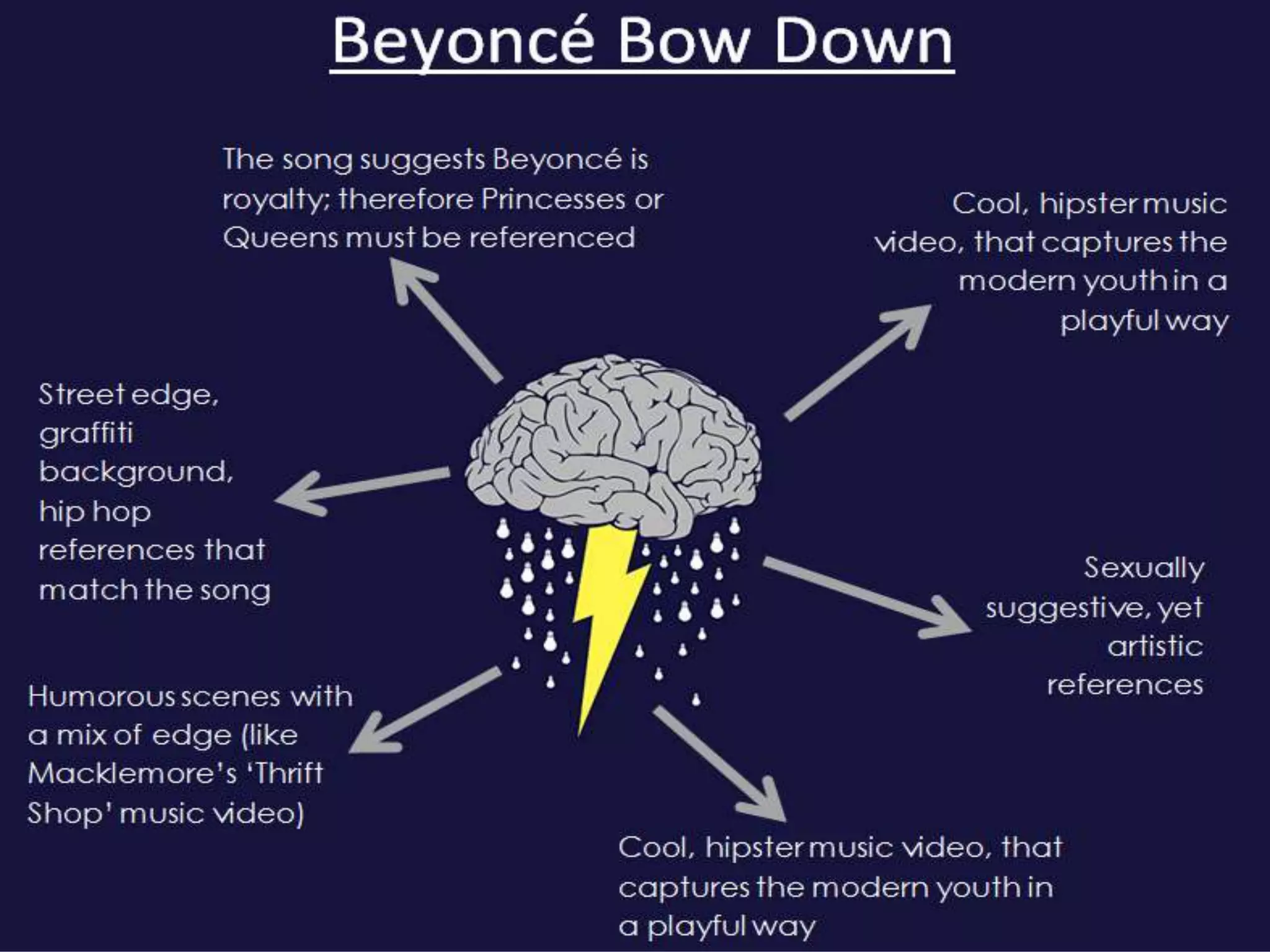 The document discusses a student's music video project for the song "Bow Down" by Beyoncé. The student received feedback on their initial music video idea. Feedback indicated the idea was fun but too explicit for some audiences. To appeal to more people, the student would need to tone down vulgar content while keeping the idea engaging. The student realized they need to refine the idea to make it unique yet still suit the song's genre.