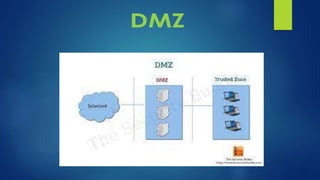 The document outlines network and information security, focusing on firewalls and intrusion detection systems (IDS). It explains types of firewalls, such as packet-filtering and proxy firewalls, and their configurations to provide security against cyber threats. Additionally, it describes the role of IDS in monitoring network activity and differentiates between host-based and network-based systems, highlighting the importance of both for effective cybersecurity management.
