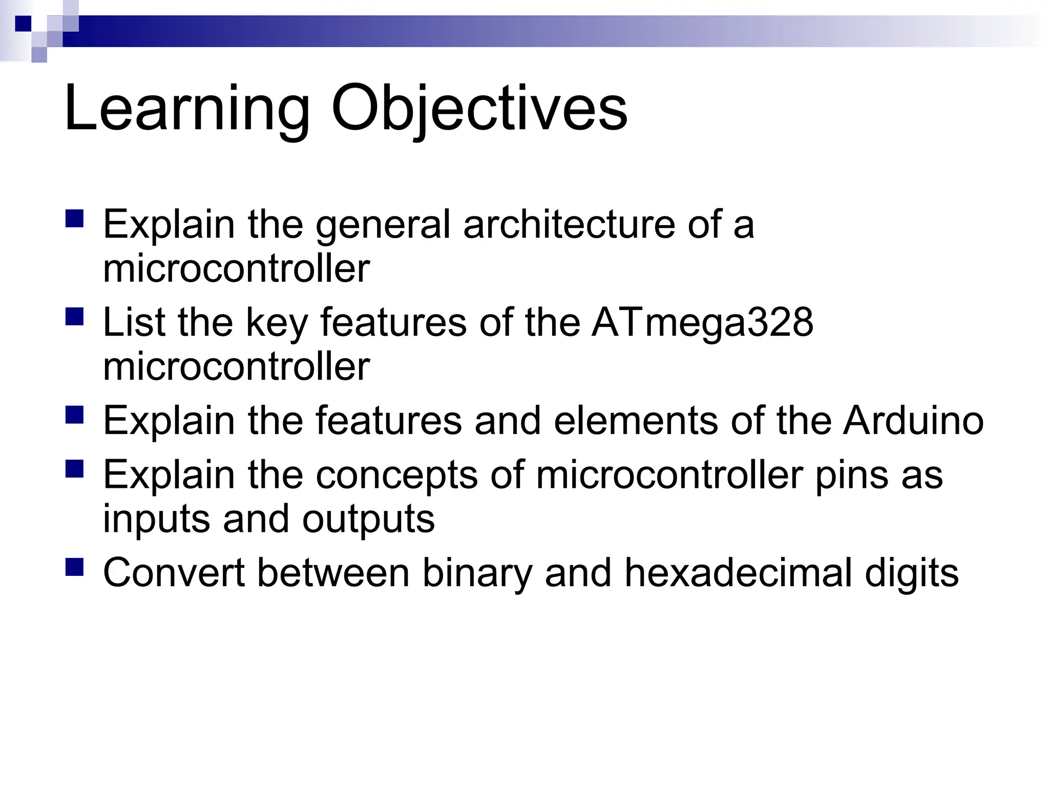 This document provides an introduction to microcontrollers, specifically focusing on the architecture and features of the ATmega328 microcontroller and Arduino. It covers basic concepts of digital and analog inputs and outputs, pin configurations, as well as programming structure and examples for controlling devices using Arduino. Key features and programming methodologies are detailed to assist in understanding microcontroller operations and interfacing elements.