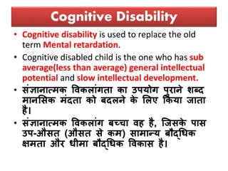 • संज्ञानात्मक विकलांग बच्चा िह है, जजसके पास