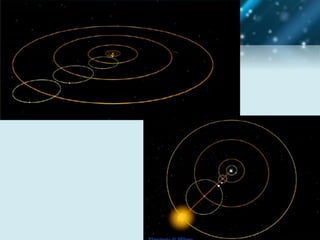 The document discusses historical beliefs about the universe, starting from 15th-century views that placed Earth at the center to the revolutionary heliocentric theory proposed by Copernicus and supported by Galileo. It highlights the shift from a geocentric model dominated by tradition and authority to a scientific perspective embracing skepticism and mathematics as fundamental to understanding the universe. The text also reflects on the role of science and religion in framing our understanding of knowledge and reality.