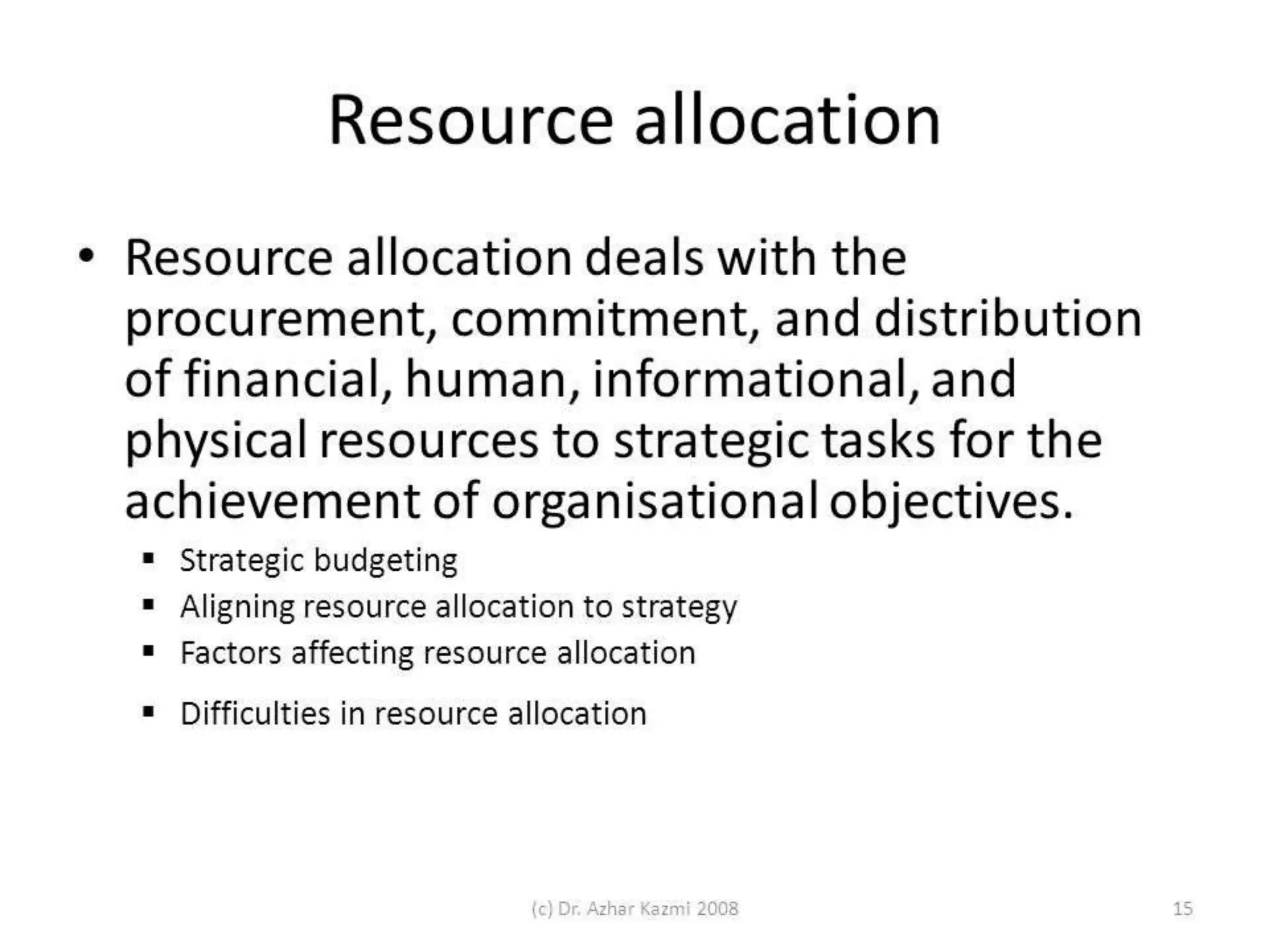 - Factors influencing resource allocation and difficulties in allocating scarce resources.