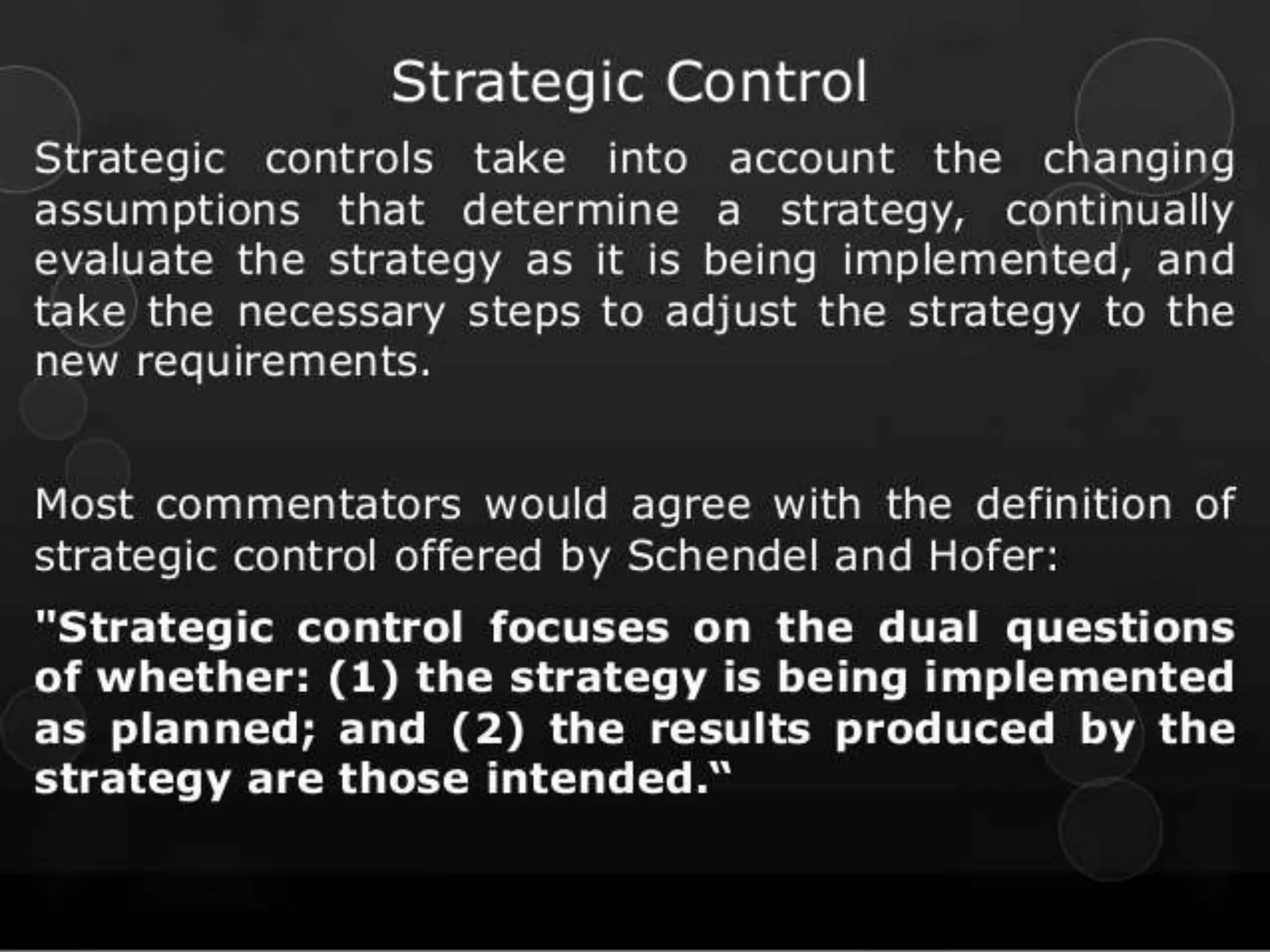 - The importance of strategic control for efficiency, quality, innovation, and customer responsiveness.