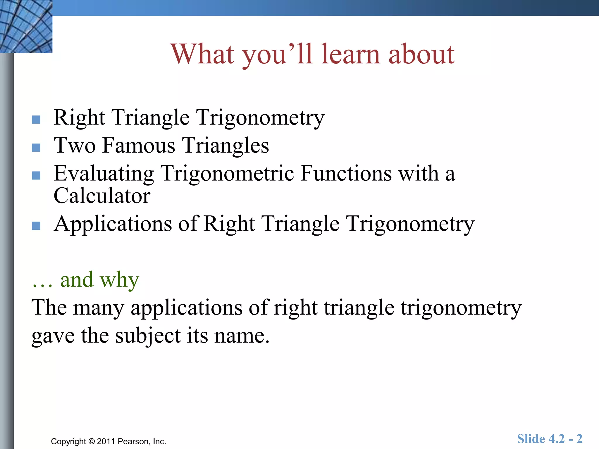 The document discusses trigonometric functions of acute angles. It defines the six trigonometric functions (sine, cosine, tangent, cotangent, secant, cosecant) using a right triangle. Examples are provided to evaluate the functions of 45 and 60 degree angles. Common calculator errors in evaluating trig functions are also discussed. The document concludes with an example problem solving a right triangle given side lengths and one interior angle measure.