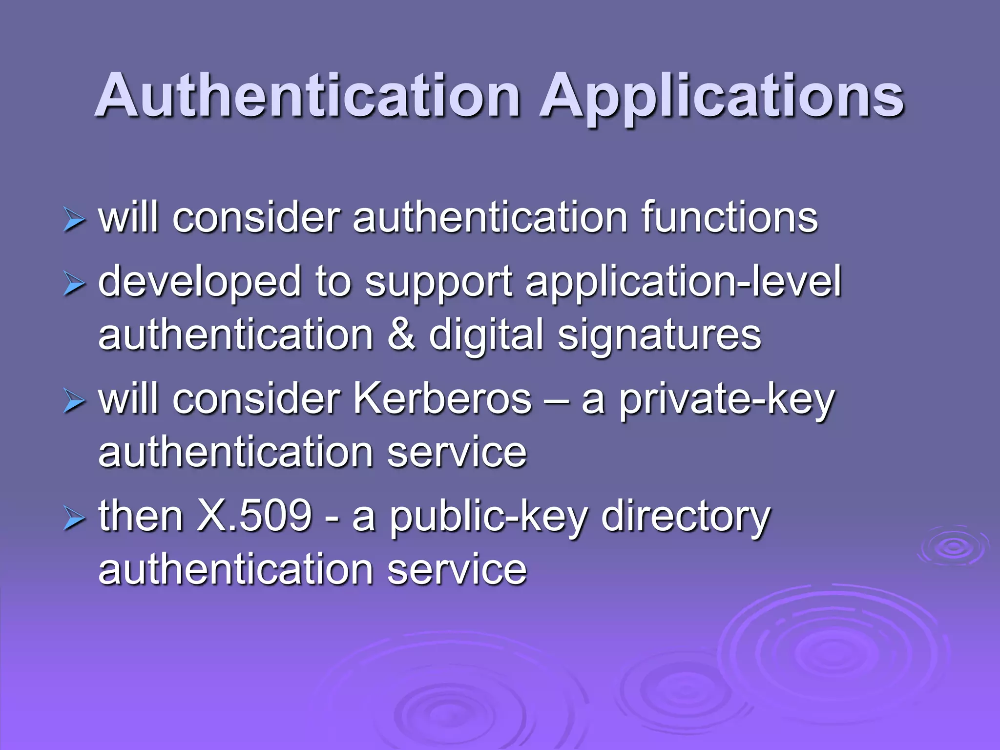 Kerberos is a trusted third-party authentication system that uses tickets and session keys to allow clients access to distributed services on a network. X.509 defines a framework for authentication using public-key cryptography and digital certificates signed by a certification authority. Key features include one-way, two-way, and three-way authentication protocols, certificate extensions, certificate revocation lists, and certificate authority hierarchies.