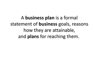 The document provides an overview of key sections to include when writing a business plan for a startup IT business. The executive summary should be 2 pages or less and explain the business concept, products/services, customers, ownership, and future outlook. The marketing plan discusses the target market, competitors, and marketing strategy. The operational plan covers daily operations, production, location, personnel, and inventory. The financial plan includes profit projections, cash flow statements, and break-even analysis. Appendices contain supplemental materials.