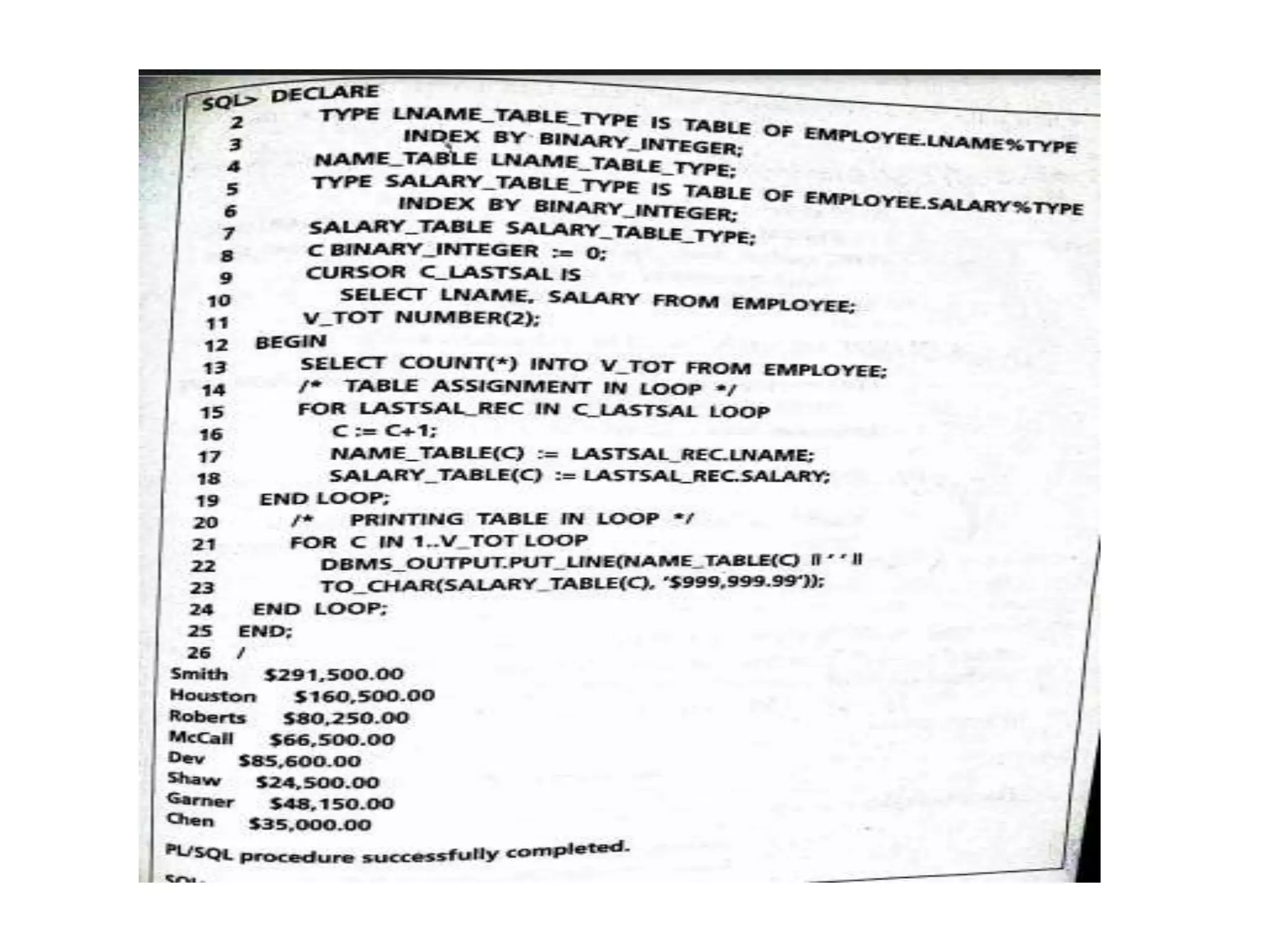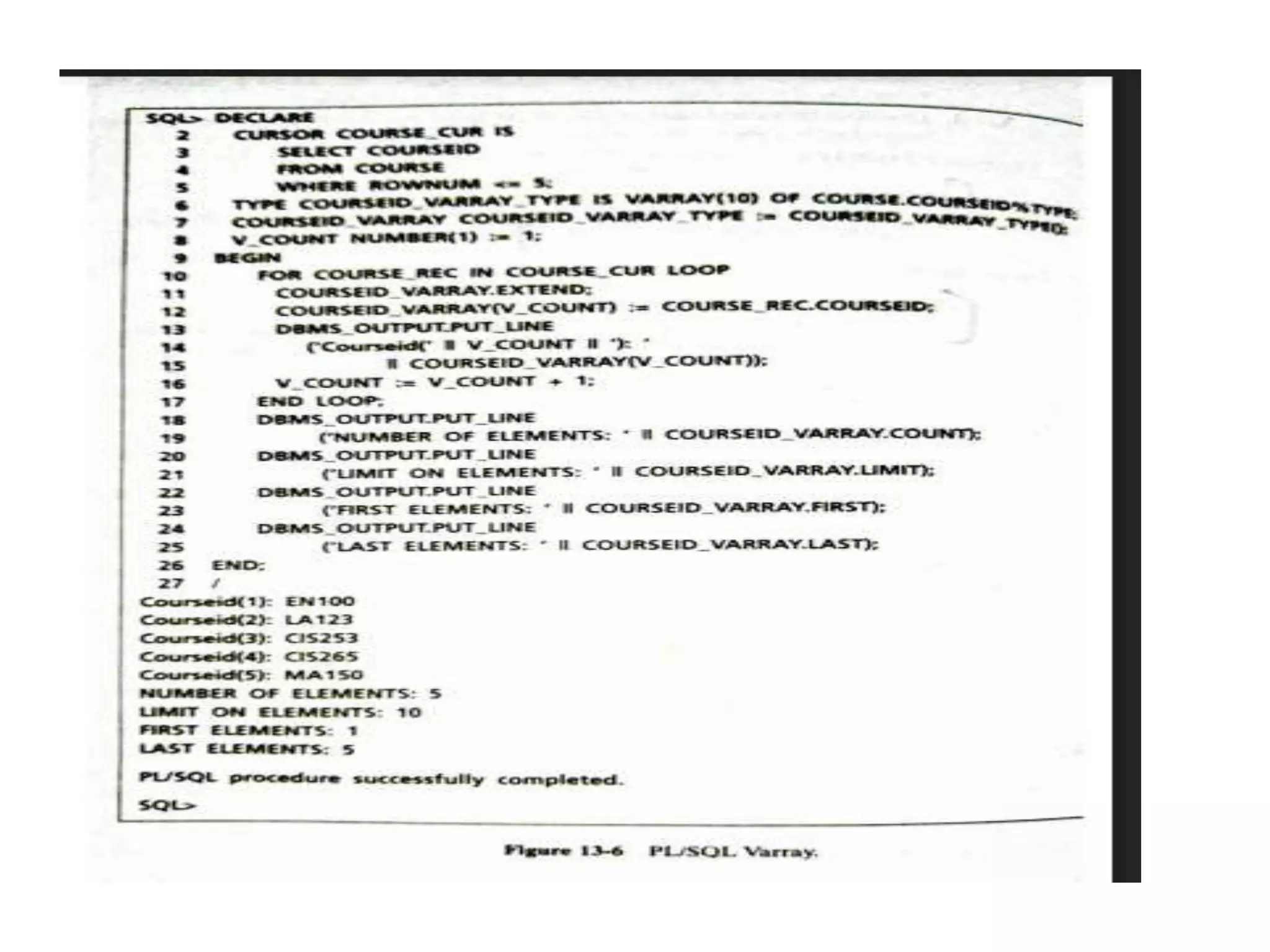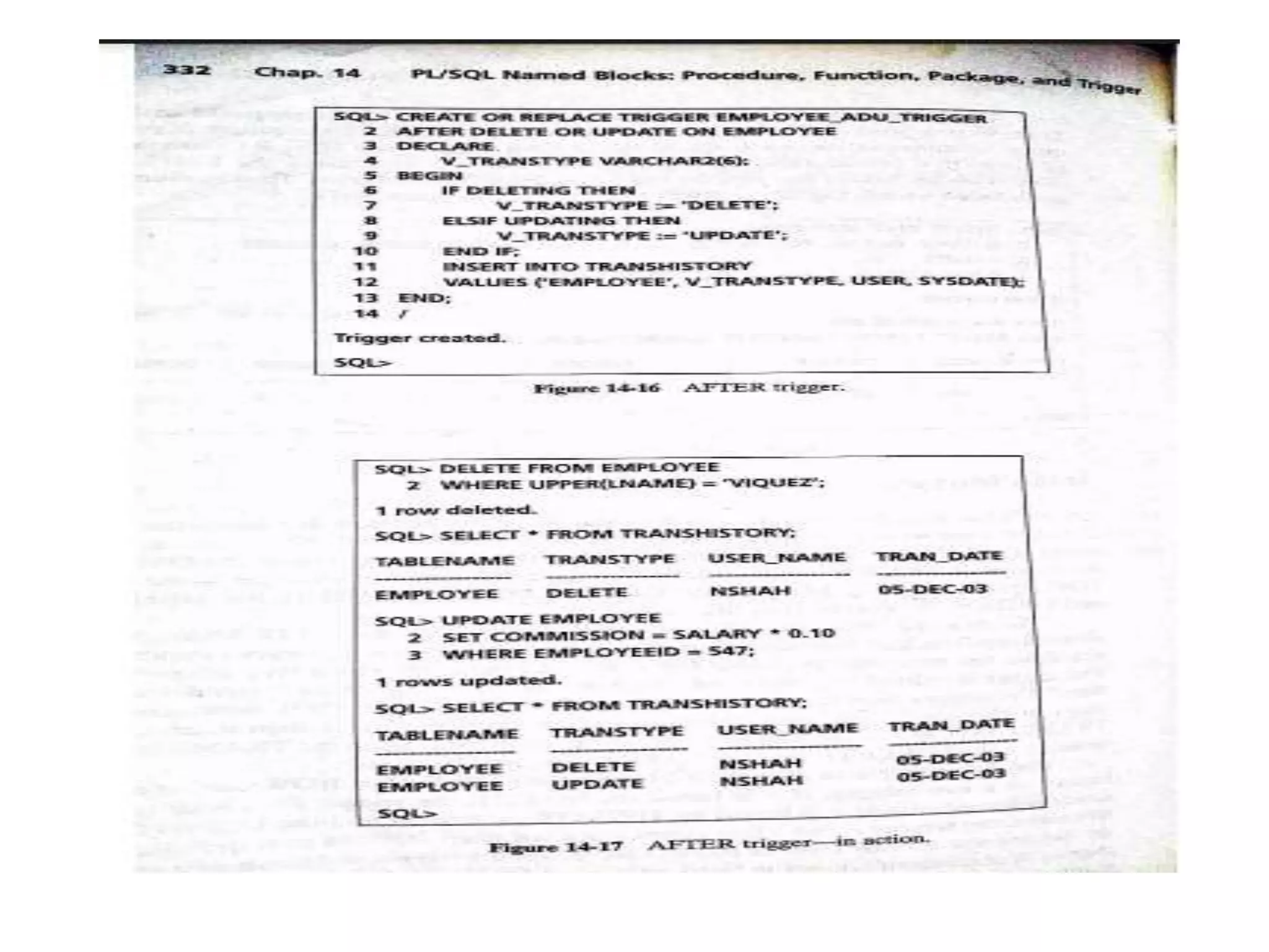 This document discusses composite data types in PL/SQL such as records, tables, nested records, and variable-sized arrays (varrays). Records are similar to rows in database tables and can contain fields of scalar or other composite types. Tables are collections of elements of the same type indexed by numbers. Nested records allow records to be included as fields within other records. Varrays are single-dimensional arrays with a bounded size. Procedures and functions are used to modularize PL/SQL code.