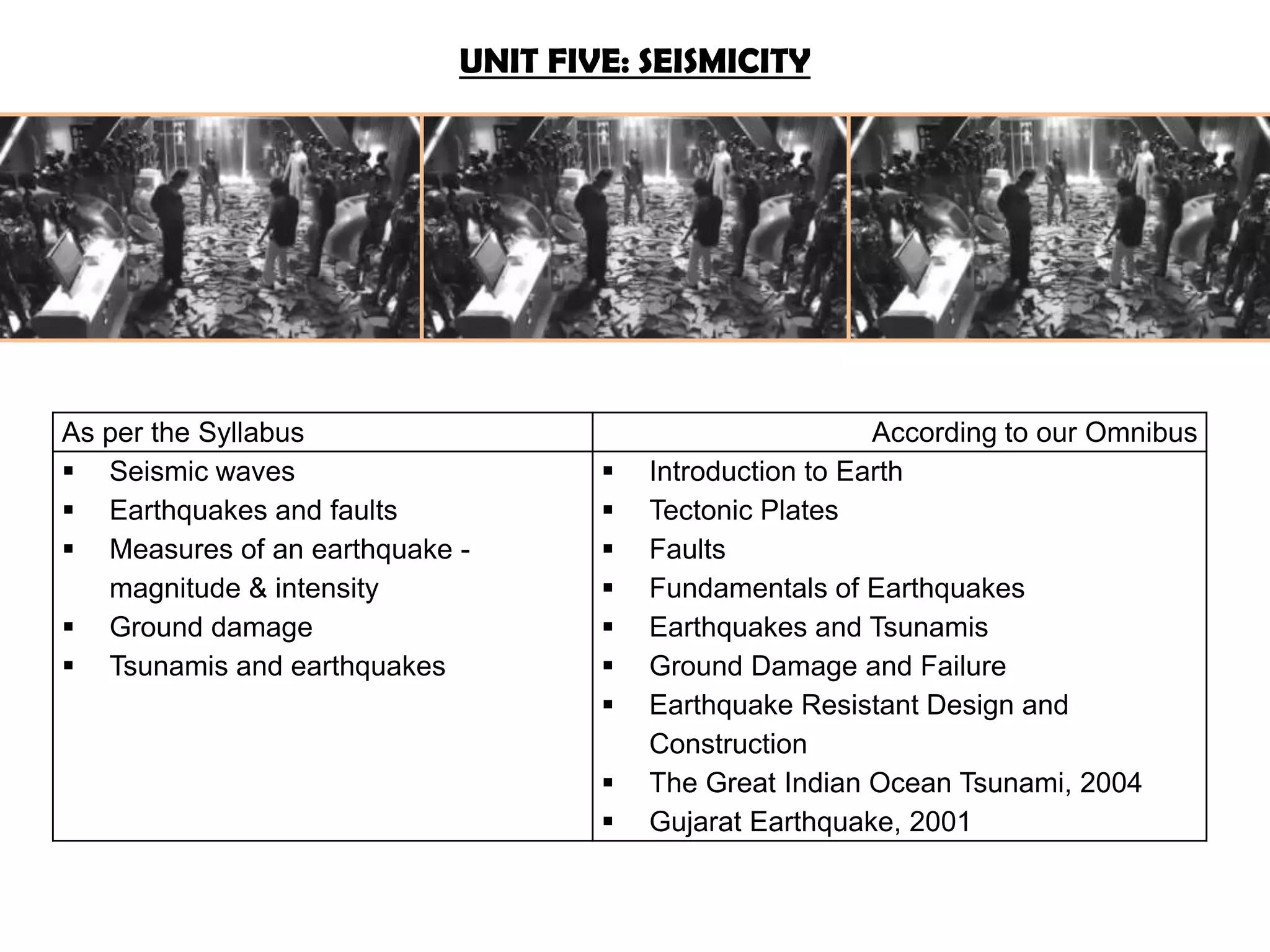 This document provides an overview of seismicity and earthquakes. It discusses seismic waves, earthquakes and faults, measures of earthquakes including magnitude and intensity, ground damage from earthquakes, tsunamis caused by earthquakes, and earthquake resistant construction. Specific topics covered include the 2001 Gujarat earthquake in India and the devastating 2004 Indian Ocean tsunami. The document aims to introduce students to key concepts regarding seismicity and earthquakes.