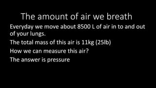 2. Key concepts covered include the definition of pressure, different pressure units, relationships between pressure and volume, relationships between temperature and volume, and how the number of gas molecules affects volume.