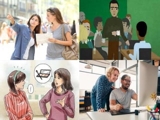 Scene 3: Student A needs travel information; Student B provides details on transportation costs, schedules, or attractions to help Student A plan their trip. They have a dialogue asking and answering questions.