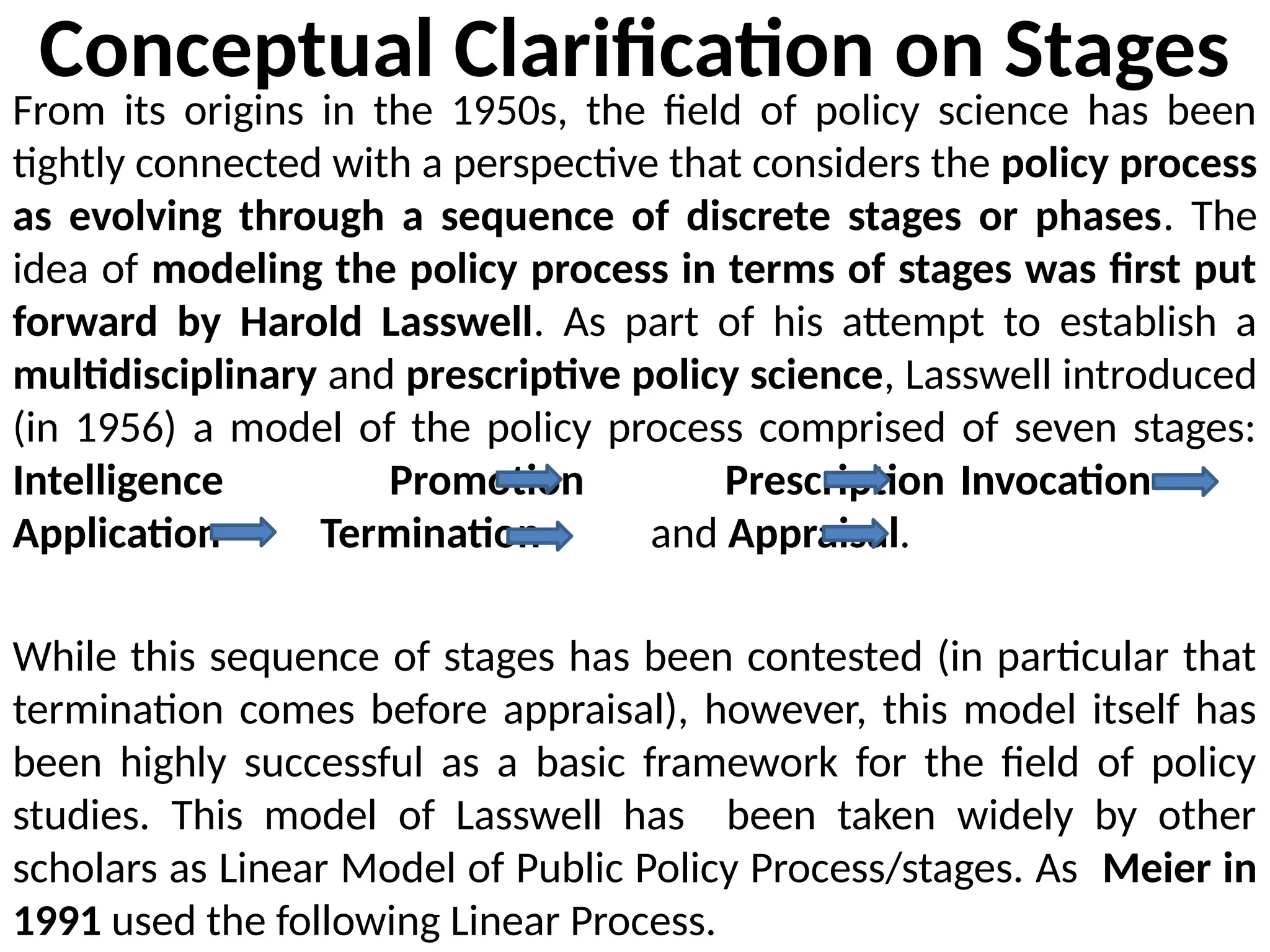 scholars as Linear Model of Public Policy Process/stages. As Meier in