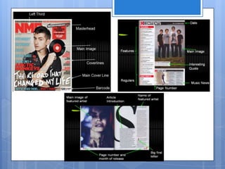 Luke Finlay evaluated his work on a magazine project. He researched similar magazines like Q and NME to understand their content, design elements, and target audiences. Based on his research, he decided to model his magazine after NME since it was less formal and appealed more to his target demographic. For pre-production, he wrote an article and took photos that he would include. He then selected and edited the final photos for the cover, contents page, and double page spread. During production, he assembled the magazine pages in Illustrator and Photoshop, including the front cover, contents page, and double page spread.