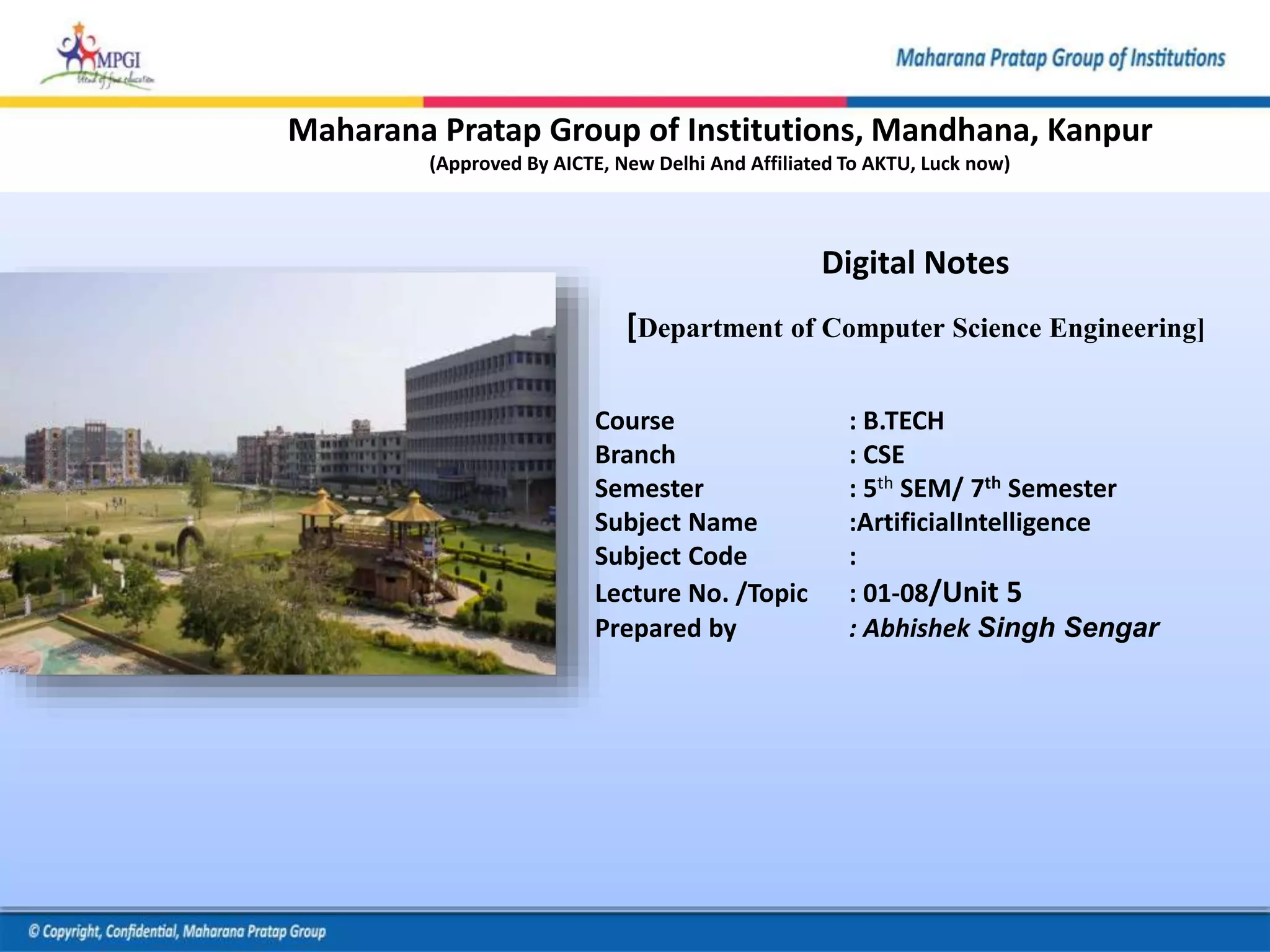 This document provides information about a 5th semester artificial intelligence subject covering applications of AI including language models, information retrieval, information extraction, natural language processing, machine translation, speech recognition, and robotics. It discusses two types of language models - statistical and neural models - and provides examples of various statistical language models including n-grams, bidirectional models, exponential models, and continuous space models. Finally, it covers natural language processing and its components, advantages, disadvantages, and applications.