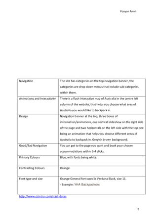 Oz Backpackers has requested that the design company create an interactive website for them. The proposal outlines plans for the website, which will include pages for home, bookings, contact, and about. The target audience is males and females aged 18-25 who are interested in backpacking. The website will be designed to appeal to this demographic. It will take approximately 2 weeks to create the site and all content must be delivered by November 26, 2012 to meet the deadline. Legal and ethical considerations like copyright and avoiding offensive content will be taken into account.