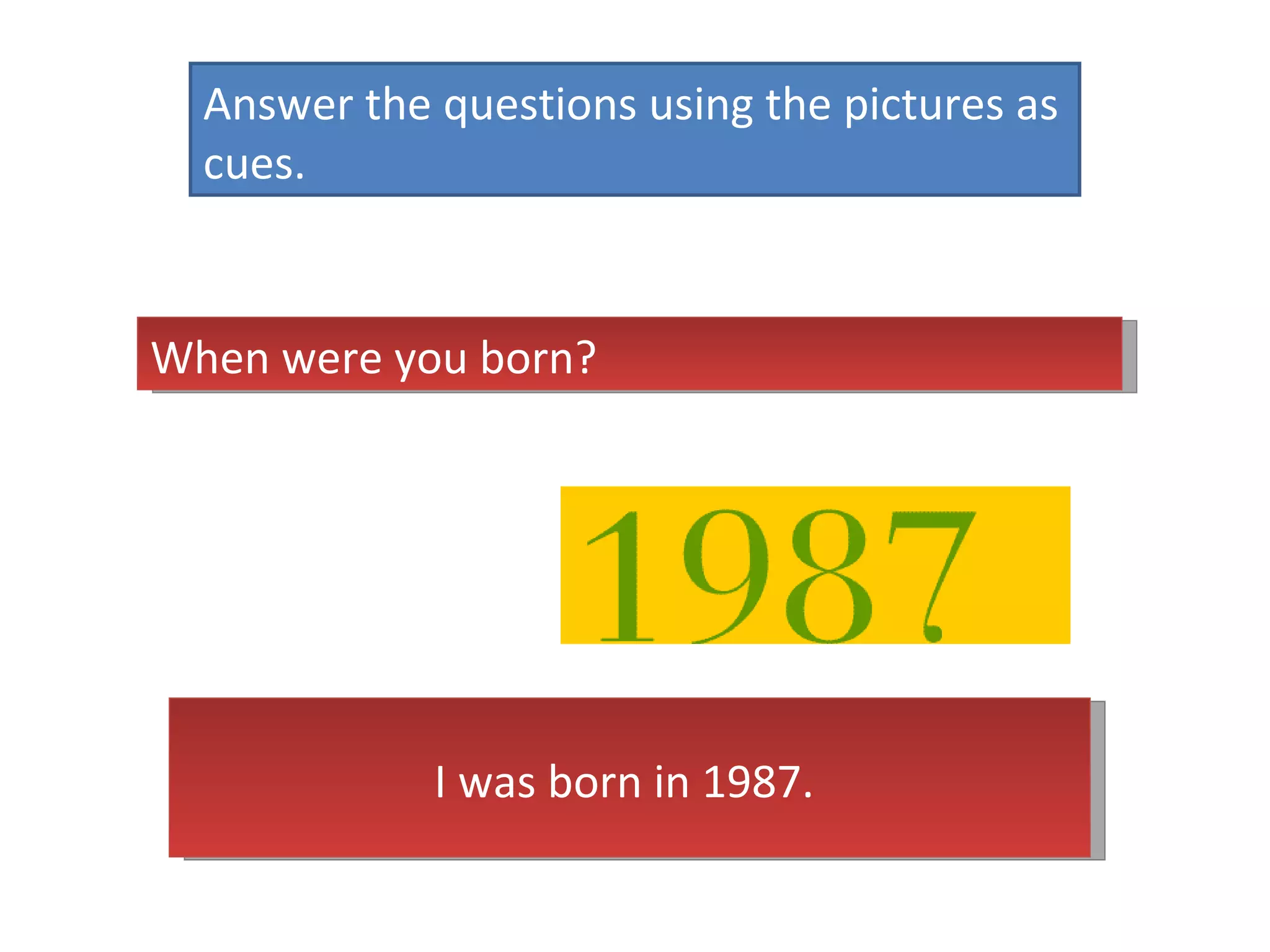 The document contains autobiographical information about a person in response to questions prompted by pictures. It reveals that the person was born in 1987, their father was born in Rio de Janeiro, they started school at age 6, learned to swim at age 4, their favorite subject was English, they lived in New York as a teenager, and moved to Brasilia in 2005.
