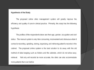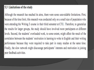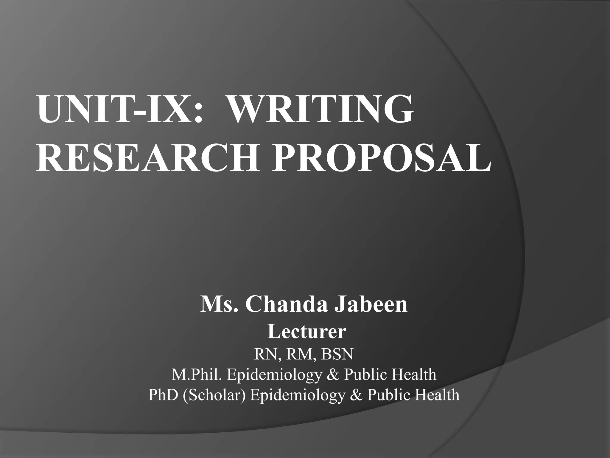 This document provides guidance on writing a research proposal. It defines a research proposal as a written document specifying what an investigator proposes to study before a project commences. The purpose is to convince a funding agency that the problem is significant, the approach is novel, and the investigator is qualified. Key parts of a proposal include an introduction, background, problem statement, theoretical framework, hypotheses, scope, limitations, and definition of terms. Variables, significance, and references are also discussed. The overall goal is to provide learners with the ability to define, describe, and complete guidelines for writing a successful research proposal.