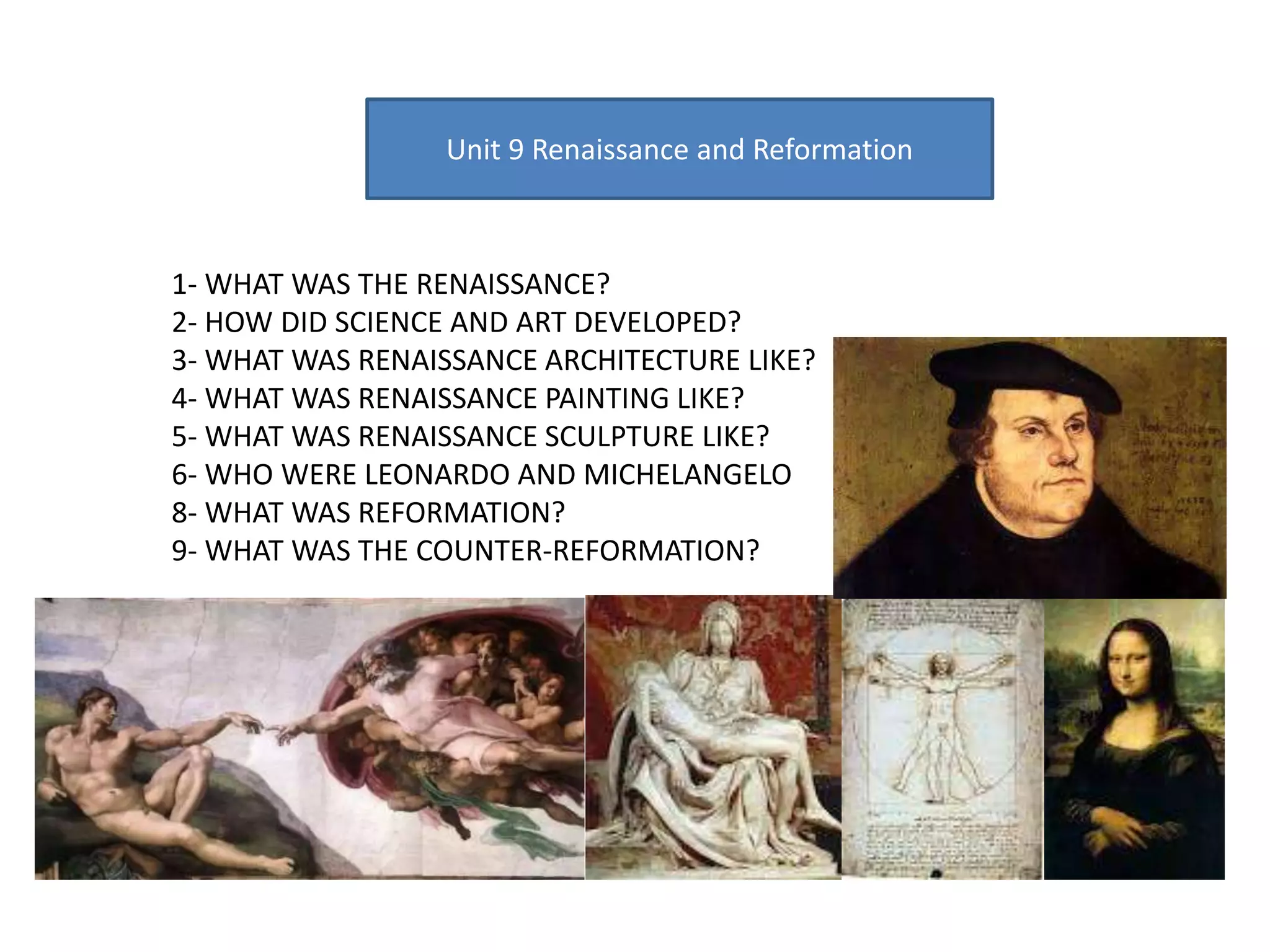 - The Renaissance saw developments in science, art, architecture, painting, and sculpture as humanism flourished and scholars looked to antiquity for inspiration. Figures like Leonardo da Vinci and Michelangelo were influential in multiple disciplines.