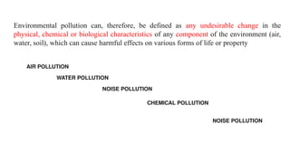Environmental pollution can,therefore, be defined as any undesirable change in the