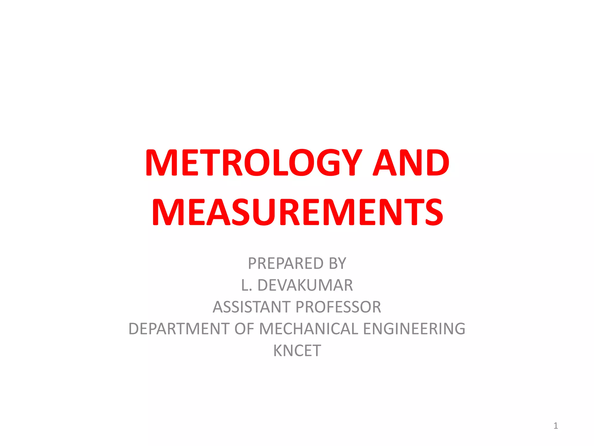 2. It describes the key elements of a metrology system as the standard, workpiece, instrument, person, and environment. Variations in any of these elements can introduce errors.