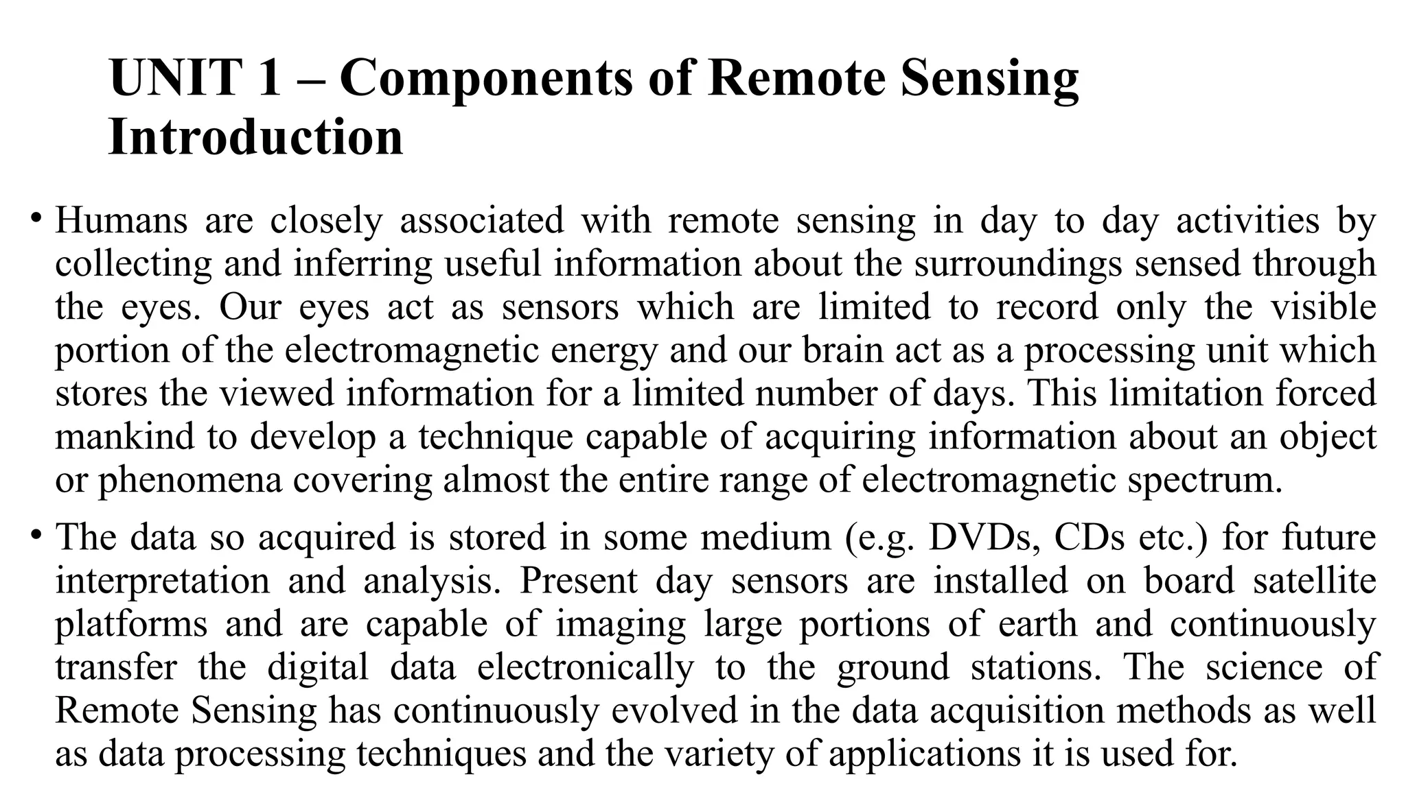 The document provides an overview of remote sensing, highlighting its components, principles, and applications. It explains how remote sensing technology involves collecting data about the Earth's surface using various types of sensors on platforms like satellites and aircraft, and details the interaction of electromagnetic radiation with targets like vegetation, soil, and water. Key functionalities such as energy sources, sensor types, and characteristics of satellite orbits are discussed, emphasizing the importance of remote sensing in environmental monitoring, land use assessment, and more.