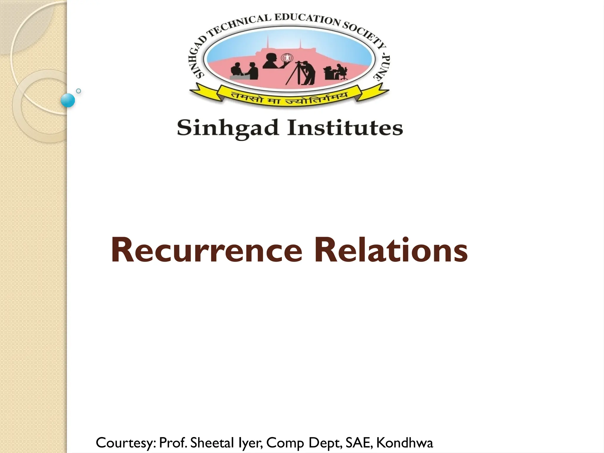 The document explains recurrence relations, focusing on their definitions, methods to find homogeneous and particular solutions, and provides examples to illustrate the concepts. A recurrence relation is defined as a recursive formula for a numeric function, with linear recurrence relations being characterized by constant coefficients. The total solution combines the homogeneous solution obtained from the characteristic equation and a particular solution based on the right-hand side of the relation.
