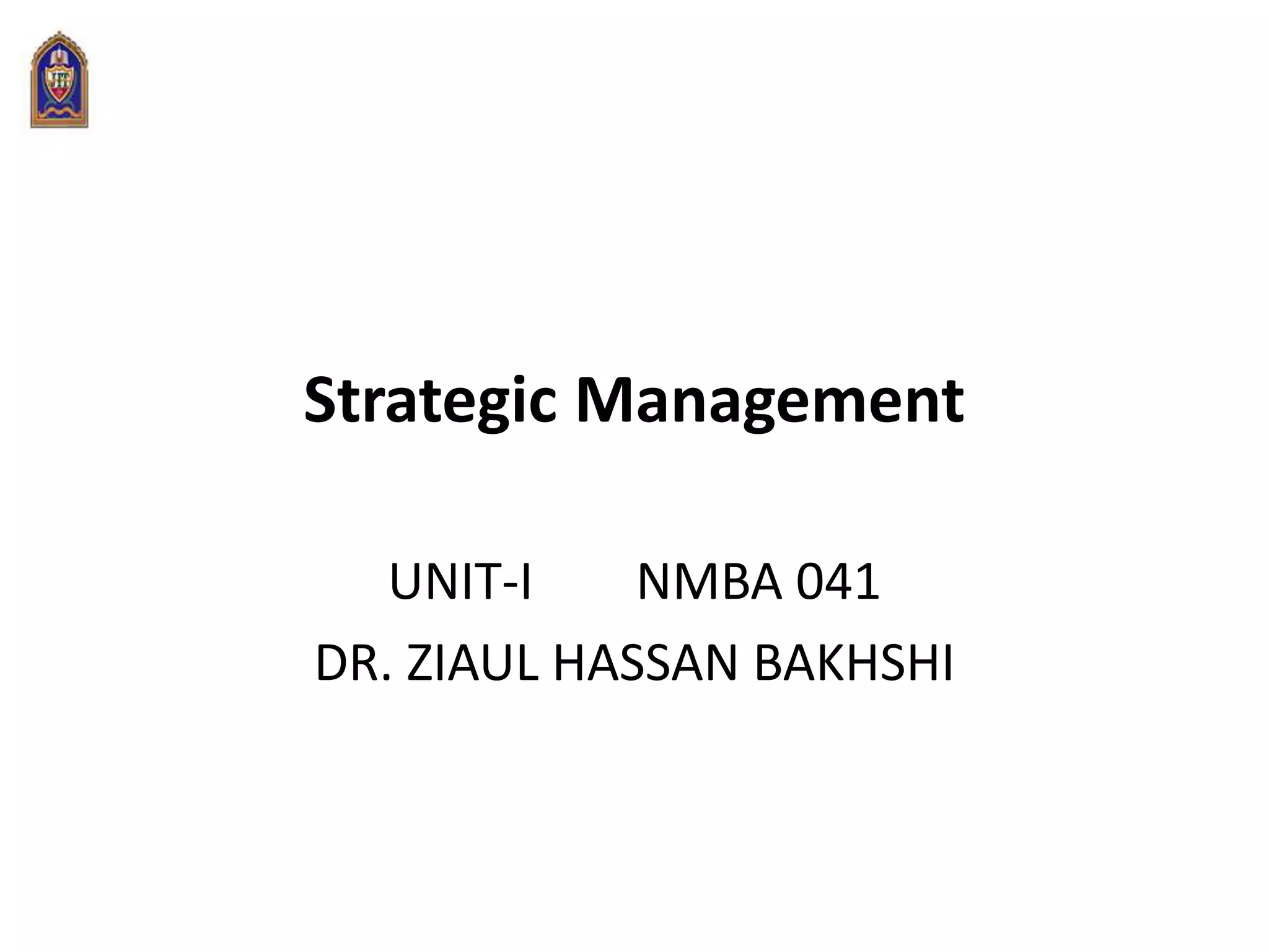 Strategic management involves analyzing a firm's internal and external environment to formulate strategies to achieve competitive advantage. It is a process that includes analyzing the environment and a firm's resources, formulating strategies, and implementing strategies. Strategy formulation develops long-term plans based on analyzing opportunities and threats in the external environment as well as a firm's strengths and weaknesses.