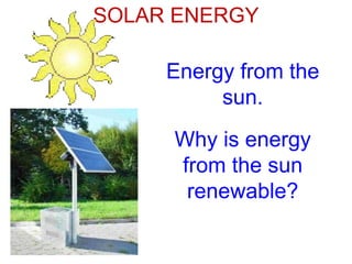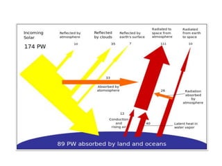 - The document also explains the fundamentals of converting solar radiation directly into electricity using photovoltaic cells and discusses solar PV power generation and applications.
