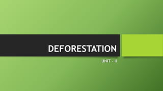 2) It causes problems like heavy soil erosion, severe flooding, desertification, and global warming by reducing the Earth's ability to absorb carbon dioxide.