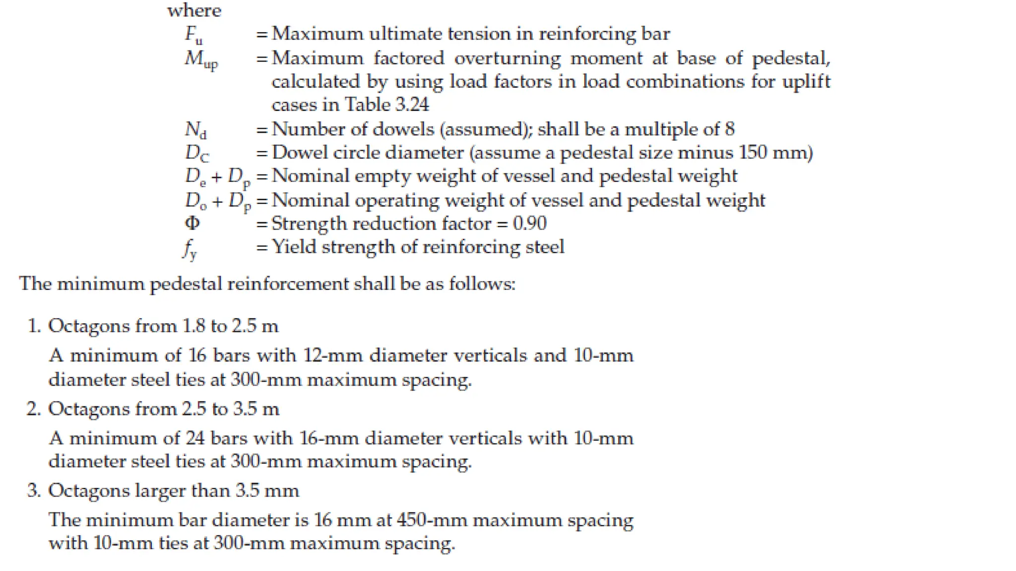 • Pedestalreinforcement shall be tied to the footing with sufficient dowels around the pedestal perimeter to