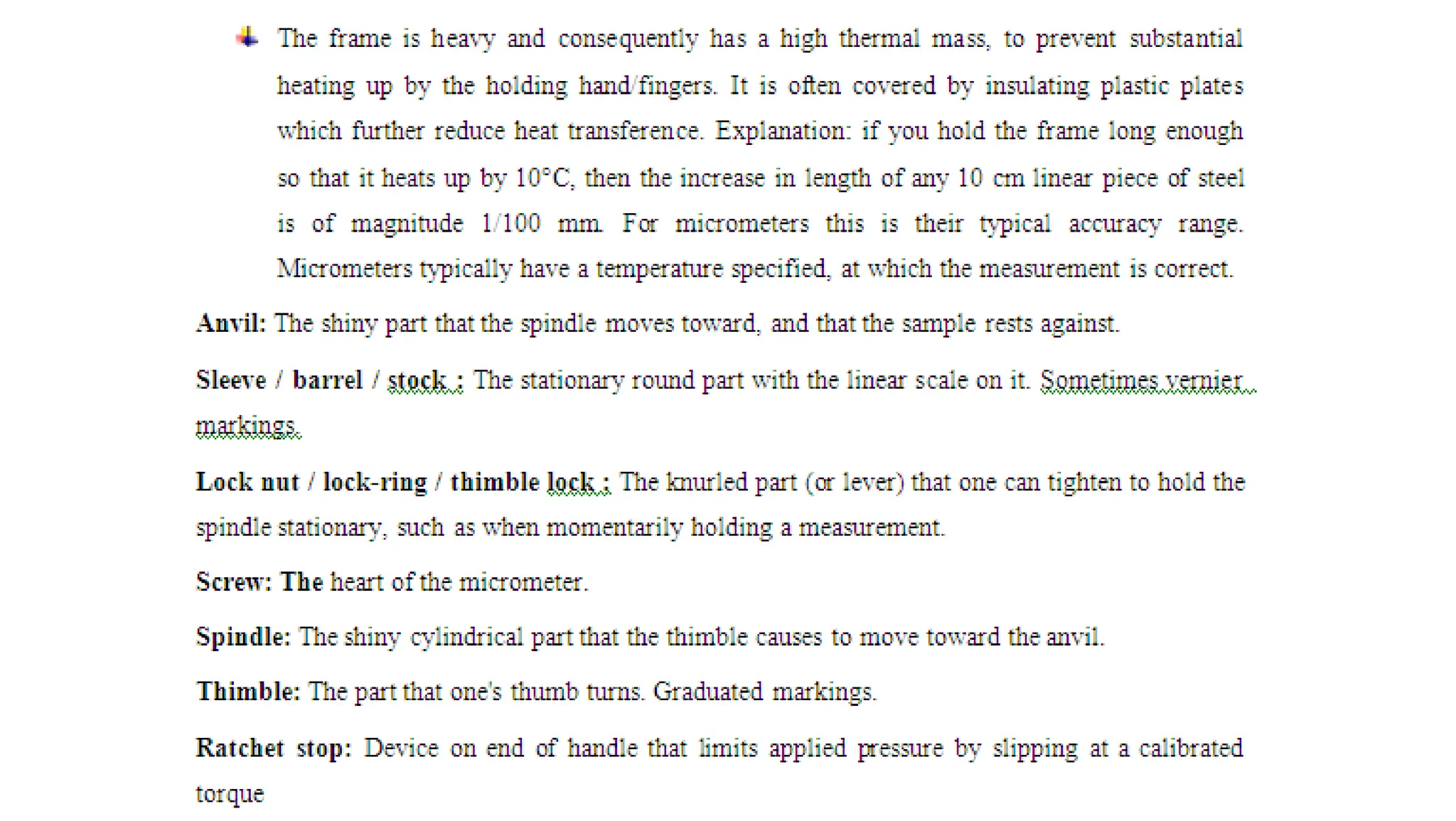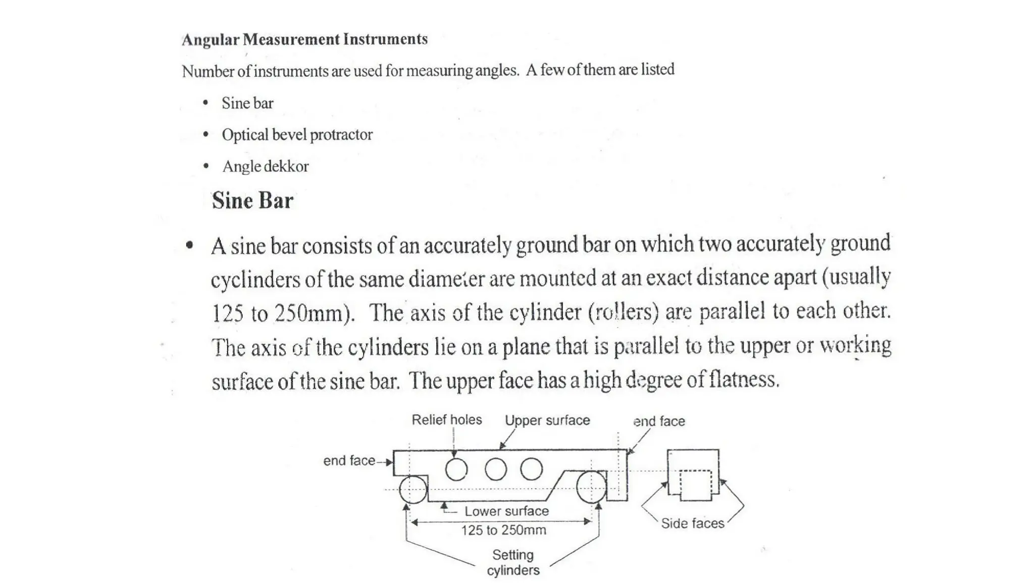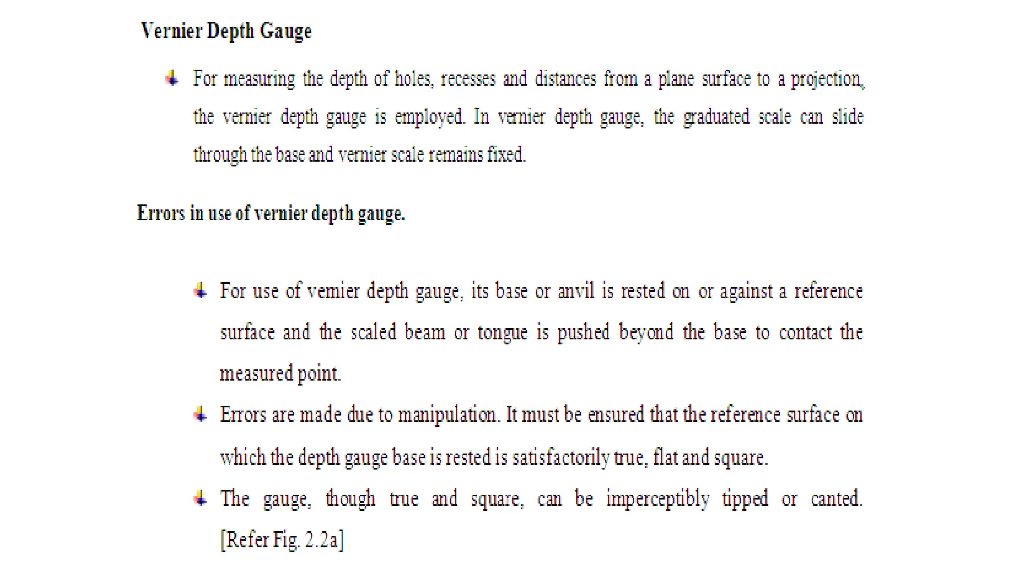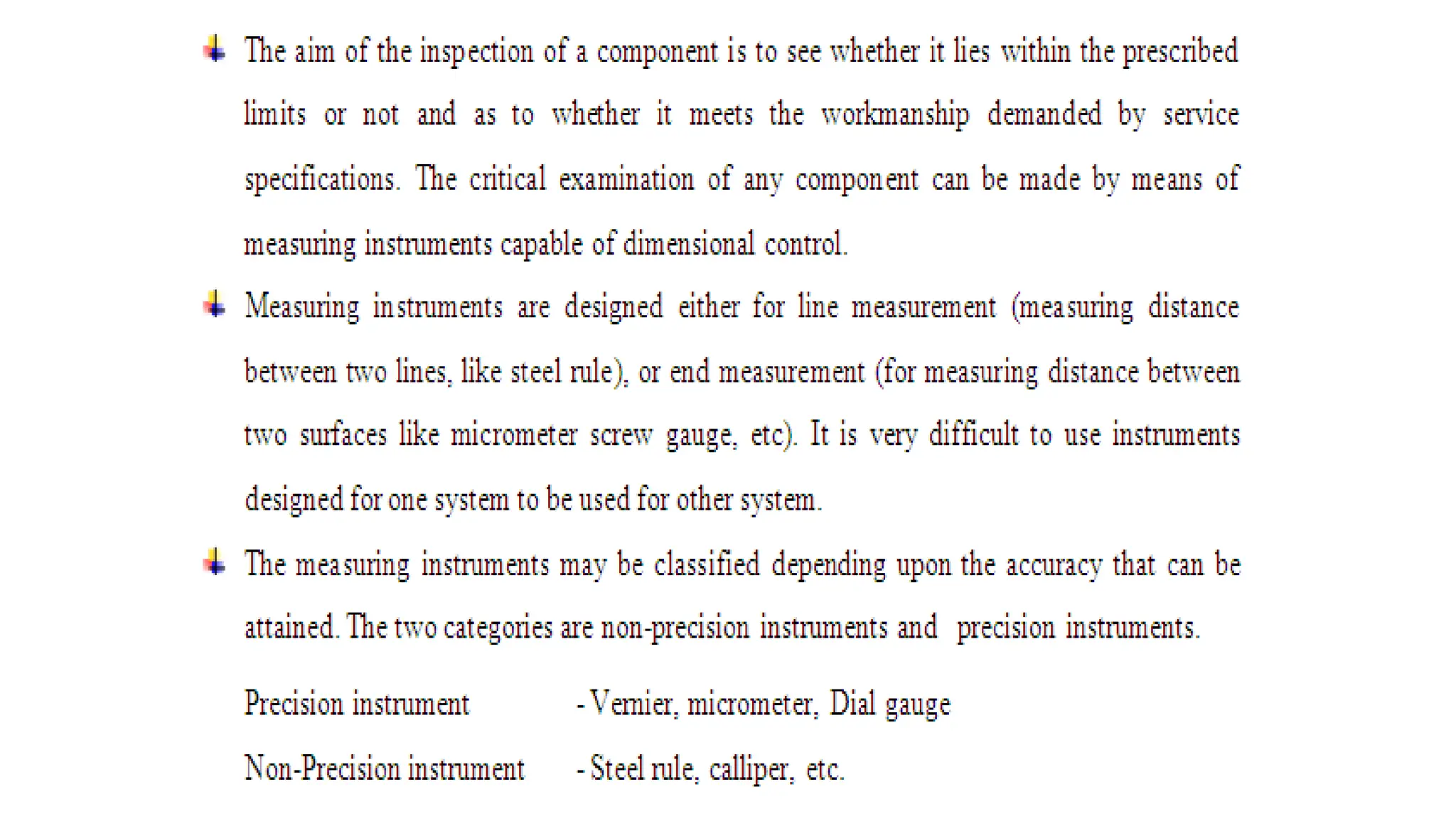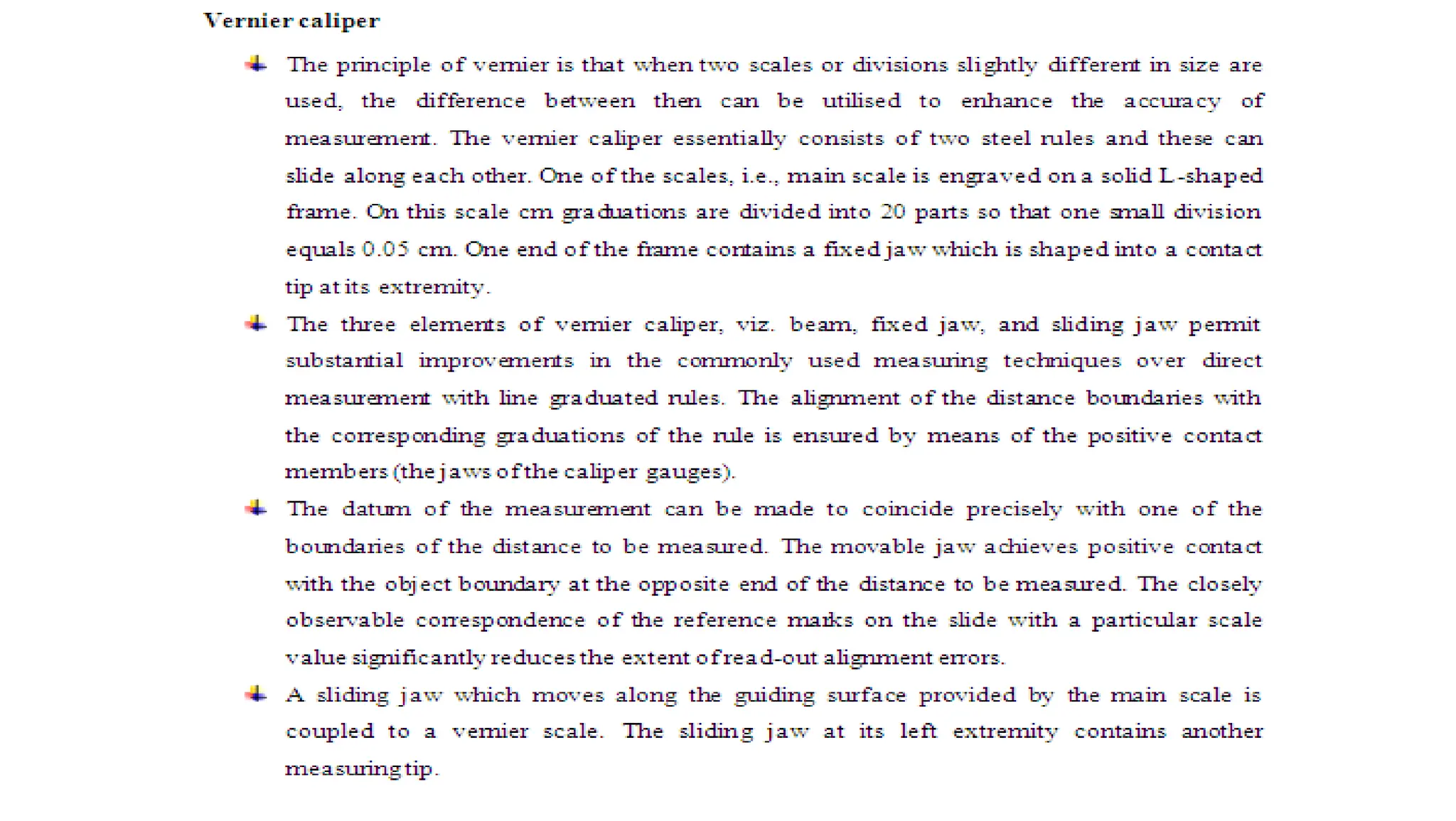 The document provides an overview of various linear and angular measuring instruments used in metrology, including vernier calipers, micrometers, and height gauges. It details their construction, types, applications, and guidelines for accurate measurement, emphasizing the importance of careful alignment and use of reference points. Additionally, it addresses the calibration and maintenance of these tools to ensure precise measurements in mechanical engineering and machining.