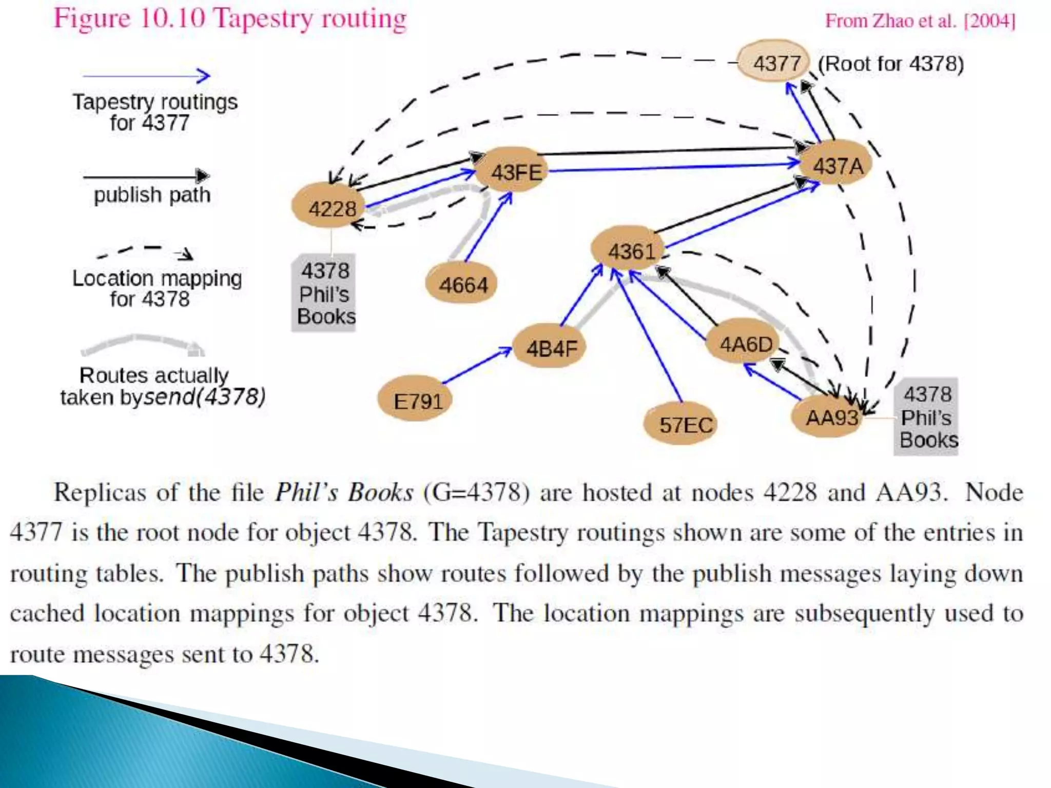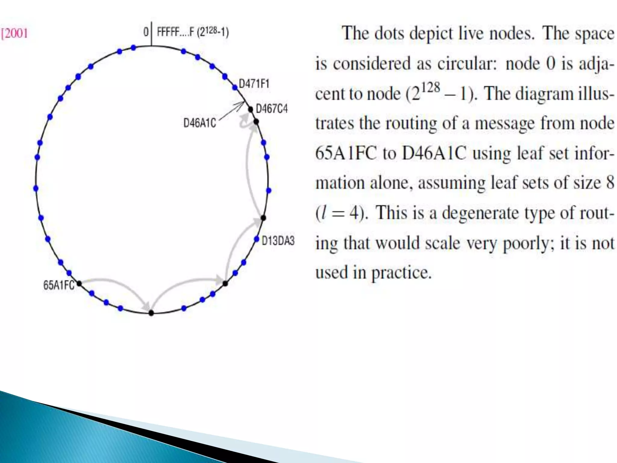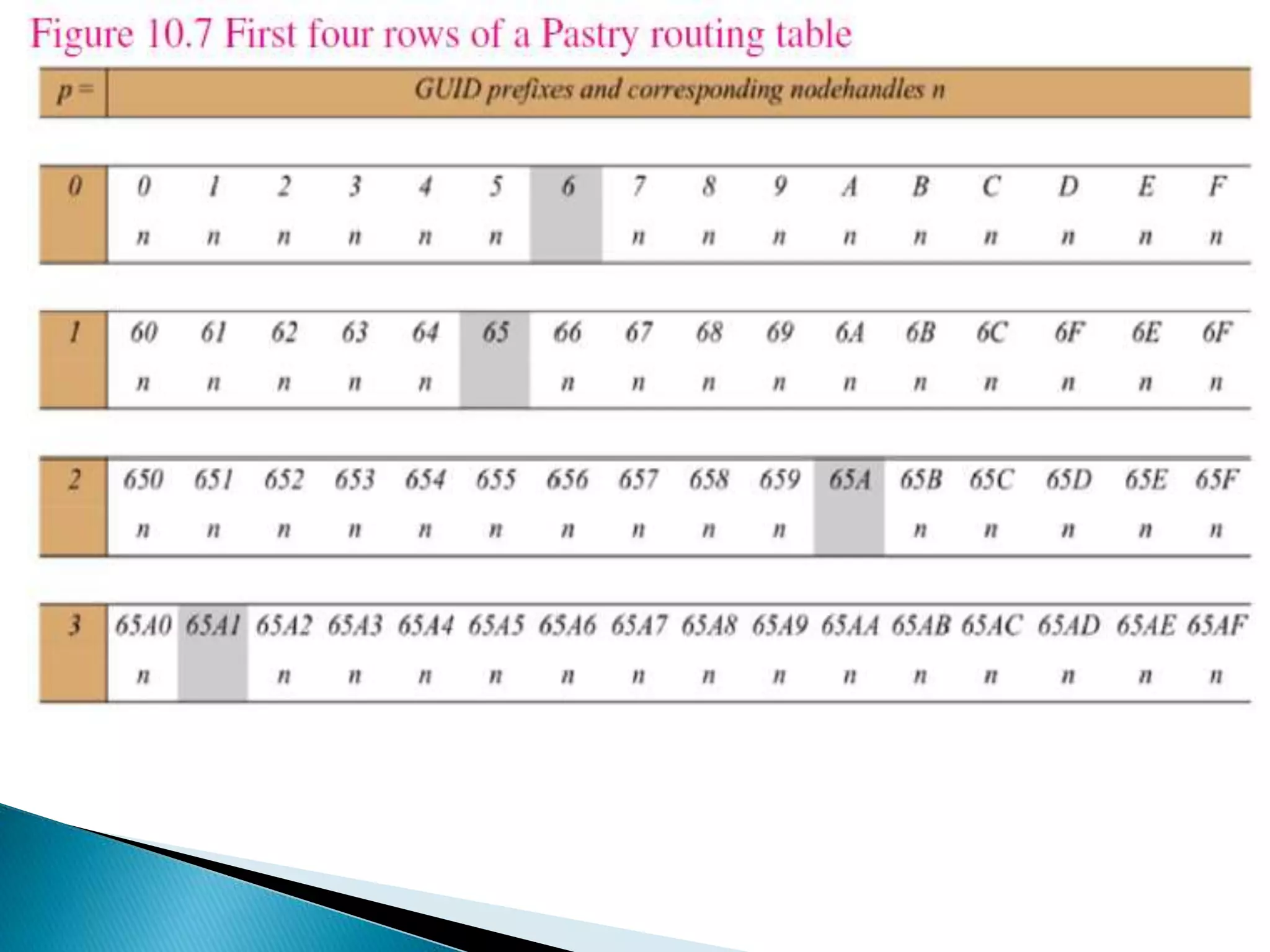 - The routing algorithm and table structure used in Pastry, an example P2P middleware, to efficiently route requests across nodes in O(log N) hops.