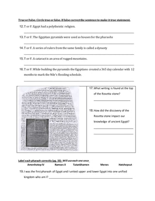 3. Some key figures in ancient Egypt included pharaohs like Ramses II, Tutankhamen, and Hatshepsut. The Rosetta Stone helped scholars understand hieroglyphics and provided insight into Egyptian civilization.