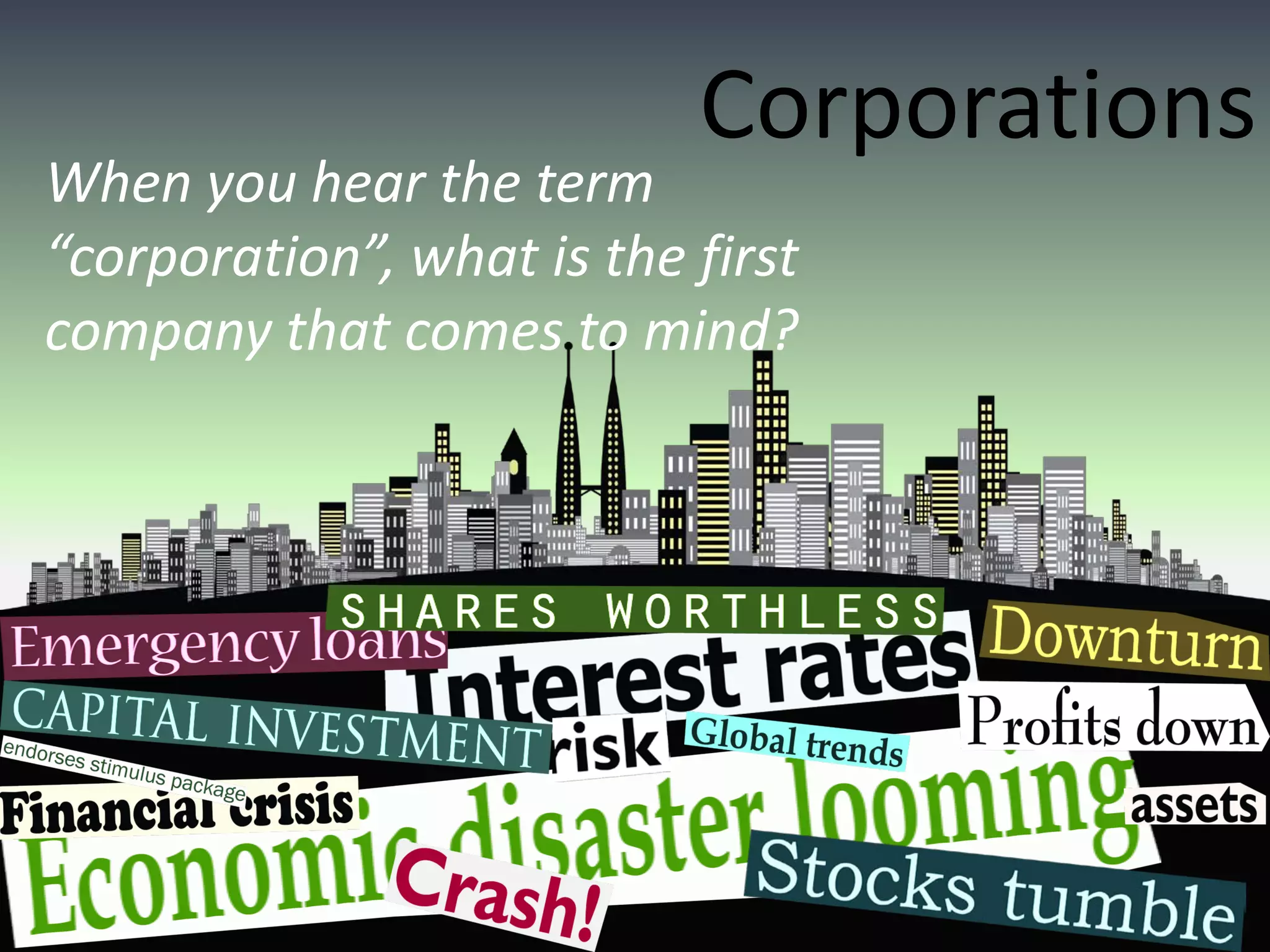 The document discusses corporations and the stock market. It provides details on what a corporation is, how they are formed and structured, their strengths like limited liability, and examples of large profitable corporations. It also discusses the stock market, listing the largest companies by revenue and profits, defining key stock market terms, and how to read a stock table.